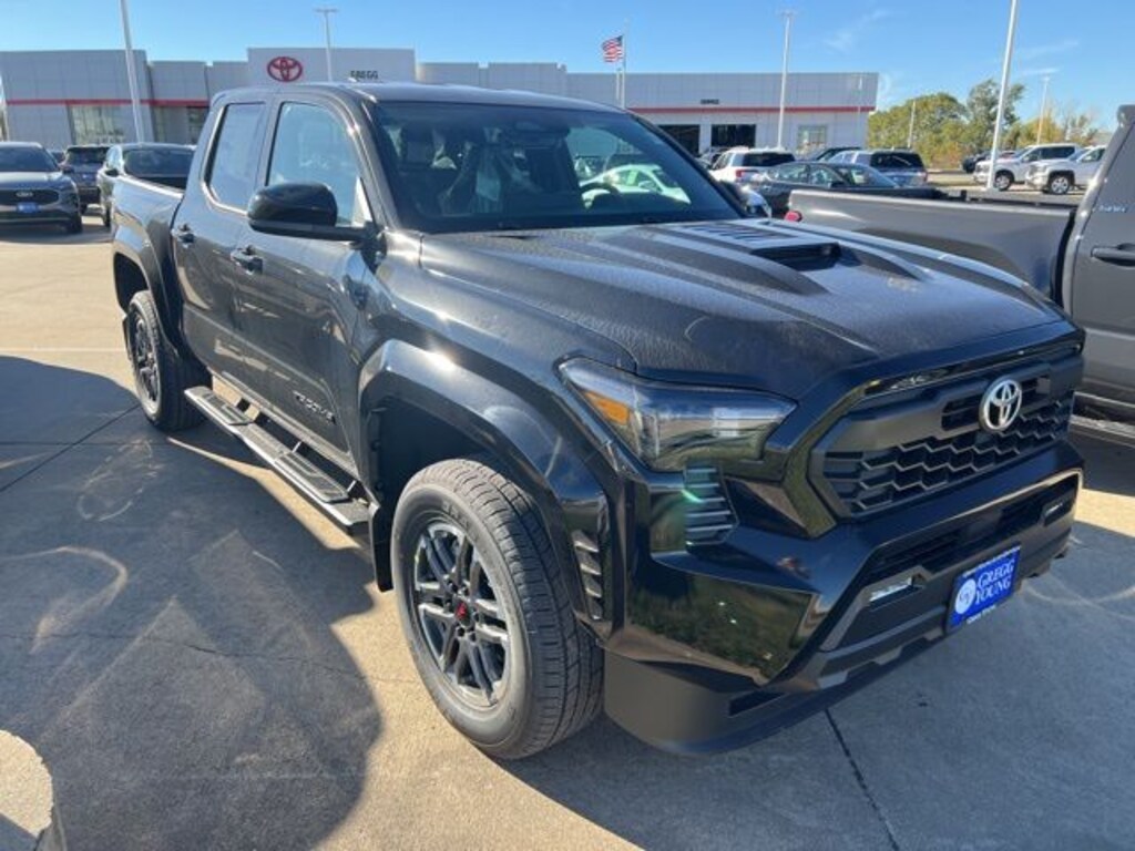 Built to conquer, our 2025 Toyota Tacoma TRD Sport Double Cab 4X4 in Black challenges you to push your limits with rugged off-road capability, bold design, and performance! Powered by a TurboCharged 2.4 Liter i-FORCE 4 Cylinder delivering 278hp to an 8 Speed Automatic transmission with a 2-speed transfer case and an automatic limited-slip differential. This Four Wheel Drive truck returns nearly 24mpg on the highway. Rugged and robust, our Tacoma shows off LED lighting, fog lamps, 18-inch alloy wheels, LED bed lighting, a stamped easy-lower tailgate, a 400W/120V power supply, and a Class IV hitch receiver.
