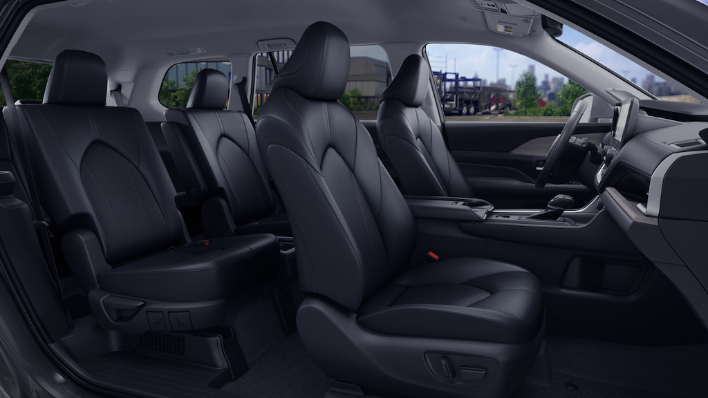 - 7-passenger seating with second-row fold-down captain's chairs and fold-down inboard armrests, adjustable headrests and two cup holders mounted on the floor; and 60/40 split, fold-down third-row seats with sliding headrests and recline function.