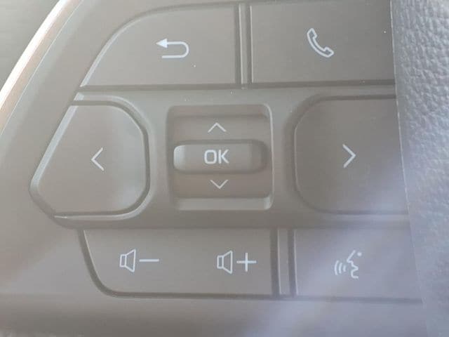 - Leather-trimmed manual tilt/telescopic steering wheel with phone, audio, display/infotainment, and driver assist controls.