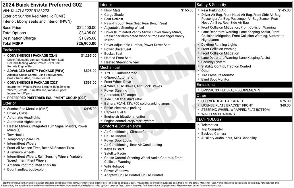 Be the envy of your neighborhood with our **One Owner**Accident Free**2024**Buick**Envista**Preferred**Adaptive Cruise Control**Heated Seats** that's dressed to impress in Sunrise Red Metallic! Motivated by a TurboCharged 1.2 Liter 3 Cylinder offering 137hp to a 6 Speed Automatic transmission for easy capability. A refined Ride and Handling suspension helps you handle what comes next, and this Front Wheel Drive SUV sees nearly 32mpg on the highway. Sleek and sporty, our Envista is engineered to stand out with LED lighting, 17-inch alloy wheels, a hidden exhaust outlet, and heated power mirrors with built-in turn signals.