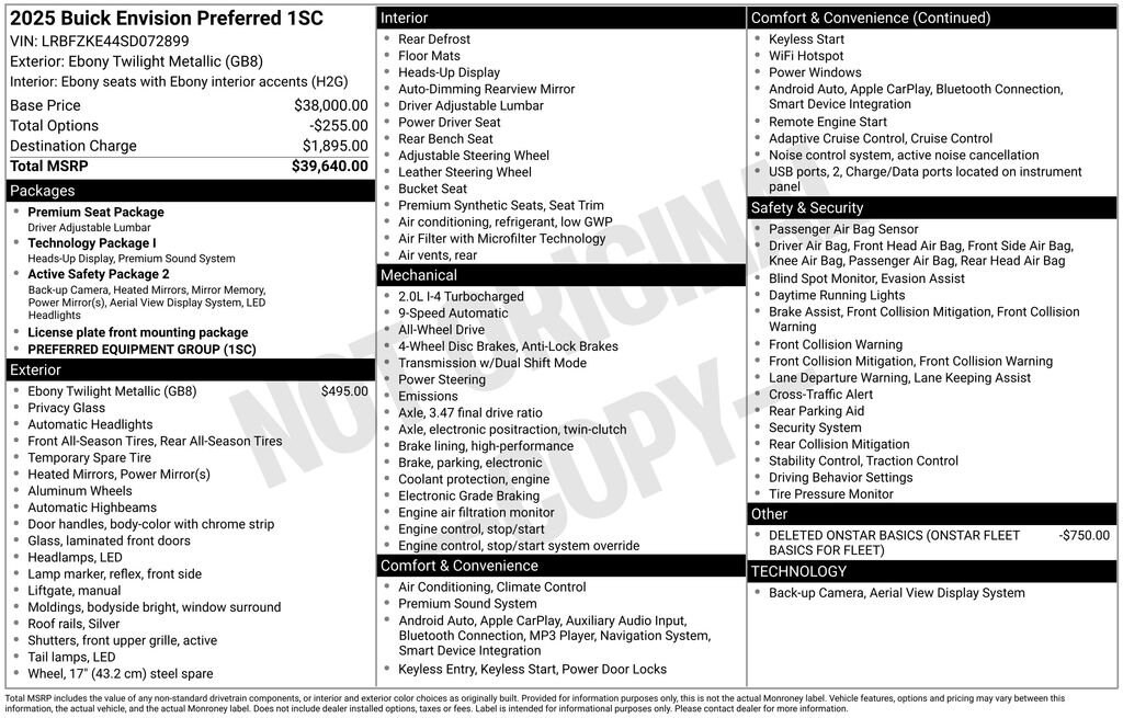 Buick helps you stay safely on the move with intelligent tech features like a head-up display, blind-spot steering assistance, lane-keeping assistance, HD surround vision, front/rear auto braking, adaptive cruise control, and more. You can start exploring new horizons today in our Envision Preferred! Save this Page and Call for Availability. We Know You Will Enjoy Your Test Drive Towards Ownership!