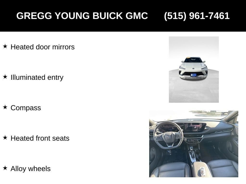 Dynamically designed, our **Accident Free**2025**Buick**Envista**Wireless Apple CarPlay/Wireless Android Auto** brings advanced technology to today's adventures in Summit White! Motivated by a TurboCharged 1.2 Liter 3 Cylinder serving up 137hp to a 6 Speed Automatic transmission for energetic efficiency. A carefully engineered suspension unlocks confident cornering, and this Front Wheel Drive SUV returns nearly 32mpg on the highway. Our Envista's sleek profile sets a high bar for style with LED lighting, black wheels, gloss-black mirror caps, matching bodyside trim, and a hidden exhaust outlet.
