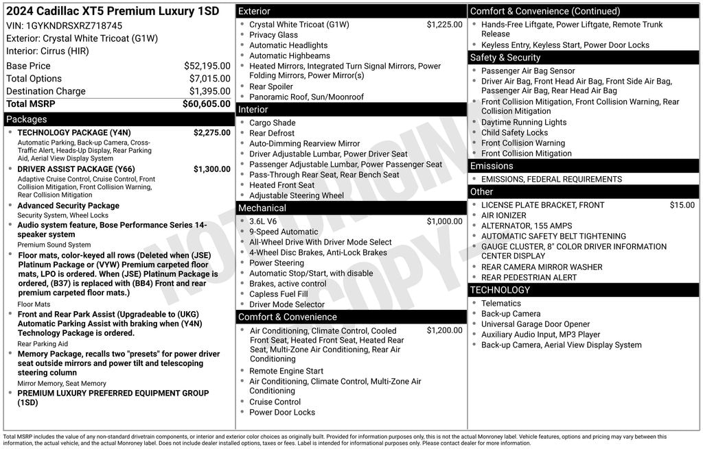 Bold and confident, our **One Owner**Accident Free**2024**Cadillac**XT5**Premium Luxury**AWD**Navigation**Sunroof** is driven to be remarkable in Crystal White Tricoat! Powered by a 3.6 Liter V6 supplying 235hp paired to a 9 Speed Automatic transmission for commanding road authority. This All Wheel Drive SUV also elevates your journeys with refined handling and returns nearly 26mpg on the highway. A distinctive design is standard with our XT5's UltraView sunroof, LED lighting, a hands-free liftgate, brushed aluminum roof rails, and 20-inch alloy wheels.