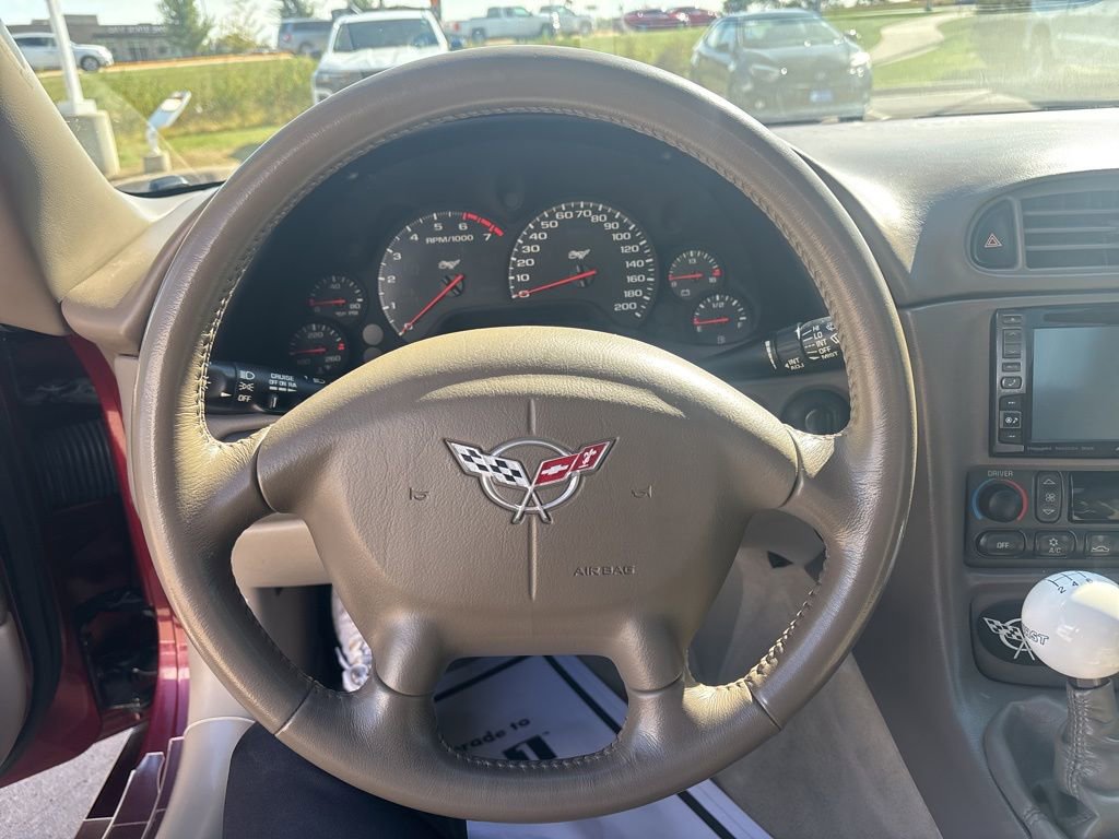 Our **Accident Free**2003**Chevrolet**Corvette**Convertible**50th Anniversary Edition** borders on amazing shown off in Dark Cherry Red Metallic! Powered by a 5.7 Liter V8 that produces a fantastic 350hp while matched to a 6 Speed Manual transmission. For pavement-ripping prowess, nothing can match this Corvette Convertible's power and grip while still offering nearly 28mpg on the road while you admire the Champagne-colored wheels and 50th Anniversary exterior badging.