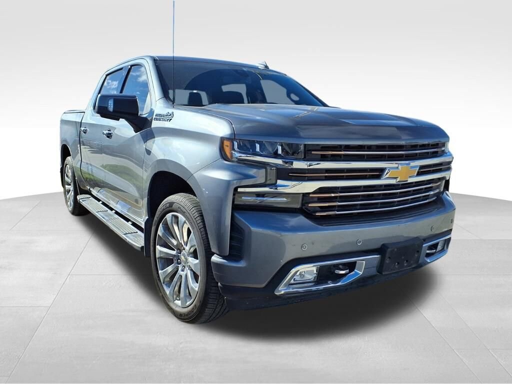 Our muscular **2019**Chevrolet**Silverado 1500**High Country**Crew Cab**4X4**Navigation**Sunroof** is a tough truck that takes you farther in Satin Steel Metallic! Powered by a 5.3 Liter EcoTec3 V8 that generates 355hp paired to an 8 Speed Automatic transmission for conquering rugged terrain. This Four Wheel Drive truck is a forceful performer with an AutoTrac two-speed transfer case and a bold appetite for adventure, and it returns nearly 21mpg on the highway. Our Silverado looks fierce and functional with LED lighting, chrome assist steps, a Chevytec spray-on bed liner, chrome recovery hooks, alloy wheels, dual exhaust outlets, a sunroof, and a power up/down tailgate.