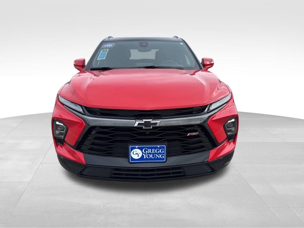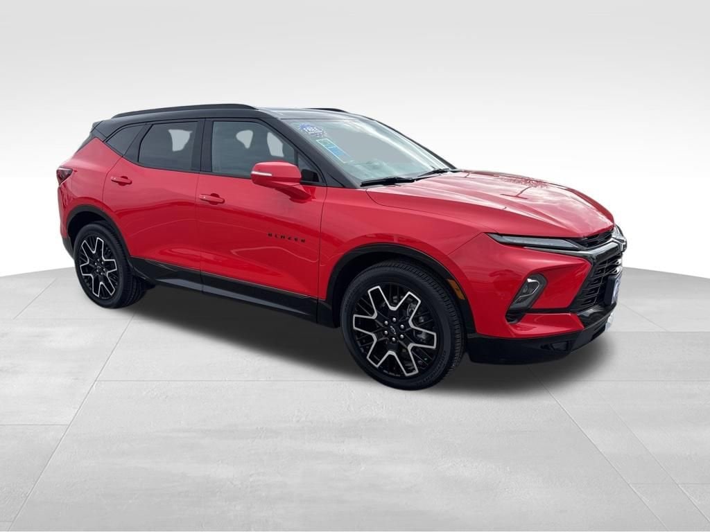 Our dynamic One Owner, Accident Free 2023 Chevrolet Blazer RS AWD with the Driver Confidence II Pack has a sporty spirit that shines through in Red Hot! Powered by a 3.6 Liter V6 that delivers 308hp tethered to a 9 Speed Automatic transmission for a rewarding driving experience. You can confidently cruise the road seeing nearly 26mpg on the highway, and this All Wheel Drive SUV has quick reflexes and matching acceleration for urban action. Contoured curves add further flair to our Blazers' design, which features LED lighting, 21-inch high gloss black wheels, black Bowtie emblems, a black roof, a hands-free liftgate, and a signature RS grille.