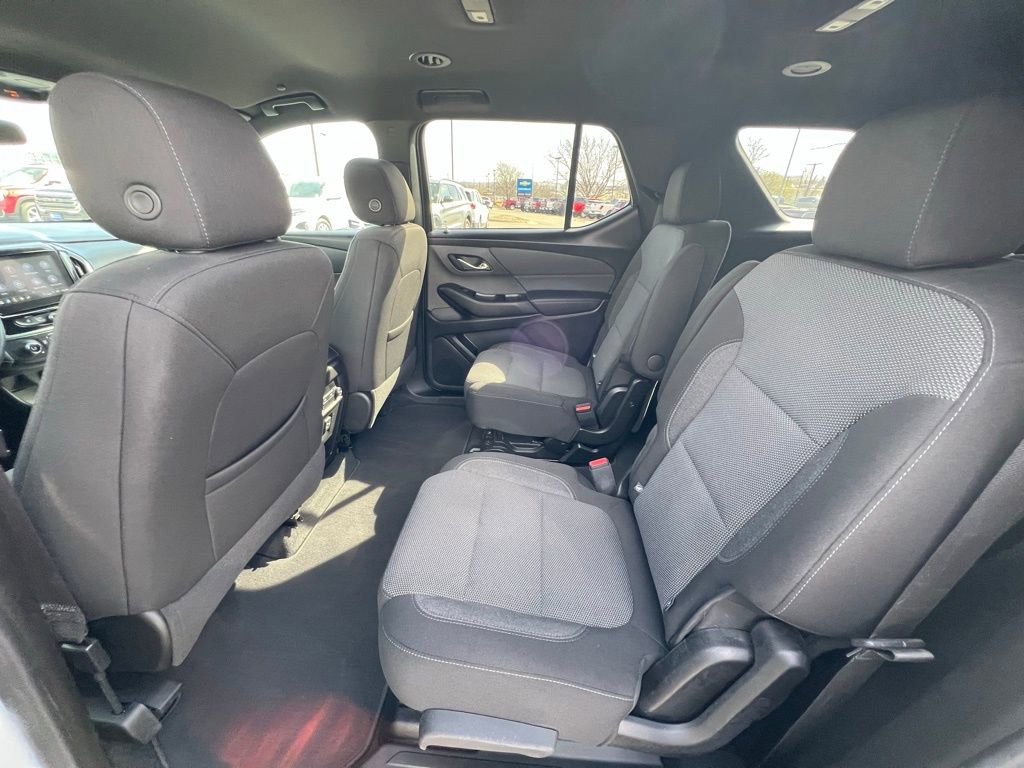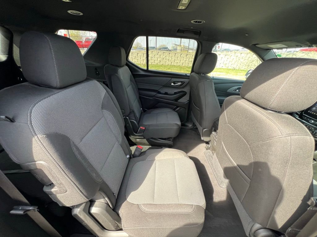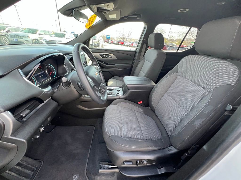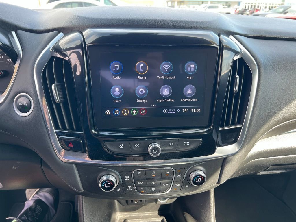 Our LT Cloth cabin provides comfortable accommodation for seven with premium cloth seats, heated front seats with eight-way power for the driver, a leather-wrapped steering wheel, tri-zone automatic climate control, cruise control, keyless access/ignition, and superior connectivity. Top Traverse technologies include a 7-inch touchscreen, WiFi compatibility, wireless Apple CarPlay®/Android Auto®, Bluetooth®, voice recognition, wireless charging, and six-speaker audio.
