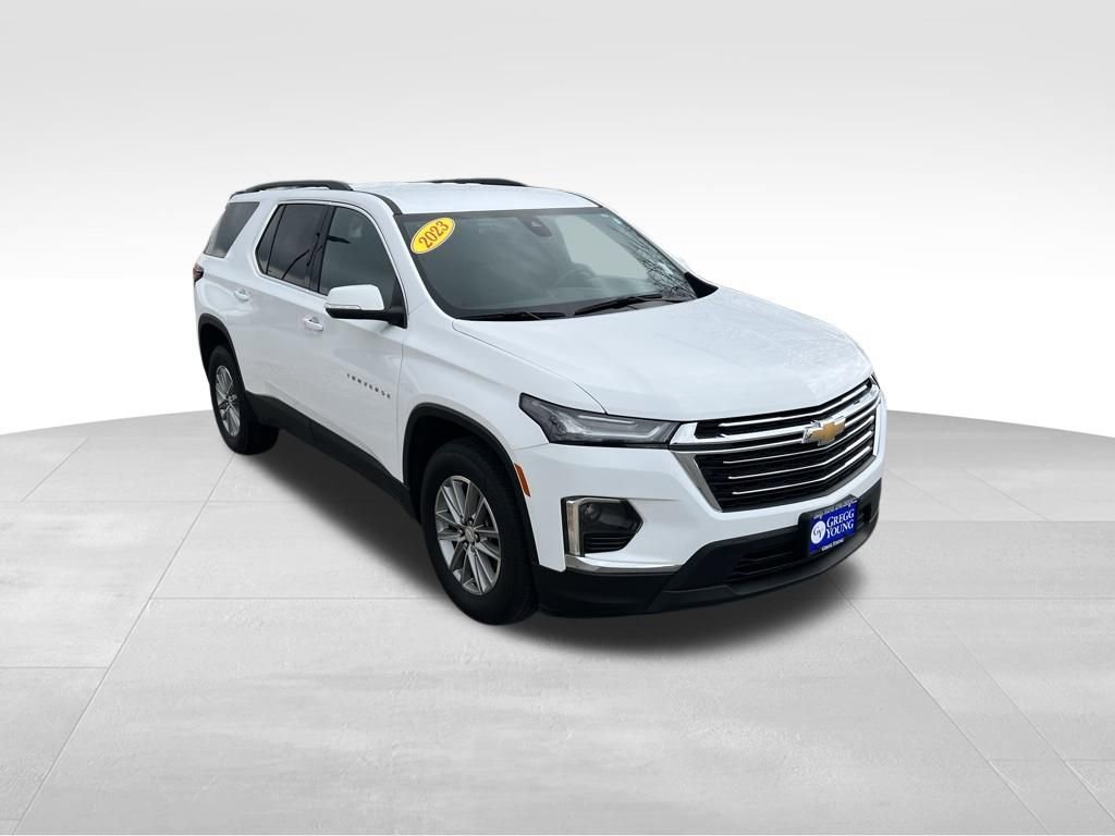 Families love our One Owner, Accident Free 2023 Chevrolet Traverse LT Cloth AWD for its rewarding capability and upscale Summit White appearance! Motivated by a 3.6 Liter V6 supplying 310hp connected to a 9 Speed Automatic transmission that's tuned to take on busy days. This All Wheel Drive SUV also sees nearly 25mpg on the highway with a refined exterior design. Our Traverse is a sleek head-turner with LED lighting, roof rails, bright dual-exhaust outlets, 18-inch alloy wheels, and heated power mirrors with built-in turn signals.