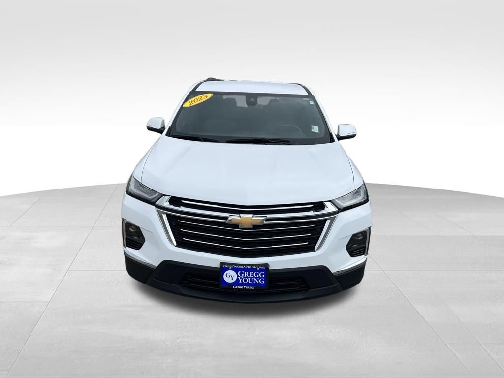Why BUY from Gregg Young Chevy Omaha? When you choose this Summit White 2023 Chevrolet Traverse LT Cloth with 43,941 miles, you are not just buying a used vehicle - you are investing in quality, reliability and peace of mind. Our clientele depend on us for Transparent Pricing, Convenience and, most importantly, Customer FIRST Service! All purchases include 5 year Complimentary Maintenance Package, valued at over $1,000! What this vehicle includes: Preferred Equipment Group 1LTAll-Wheel Drive SystemHeated Driver and Front Passenger Seats Safety and Security Forward collision mitigation - Forward thinking. You look away for just a second and suddenly the vehicle in front of you has stopped. That's when the forward collision mitigation system comes to life. When it senses an impending impact, it will activate a combination of features to help prevent or reduce the severity of an accident. Forward collision mitigation is always looking ahead. Pedestrian impact prevention - An extra step toward safety. Pedestrians don't always stop, look, and listen, but with Pedestrian Impact Prevention, your vehicle is equipped to better see them and avoid them. This system constantly monitors the road ahead to identify and track pedestrians. It projects that image to an interior display screen, AND should an impact become likely, Pedestrian impact prevention takes steps to avoid a collision.Technology and Telematics Smart device mirroring - Smartphone, meet smart car. You can control your device through your vehicle's infotainment system. Smart device mirroring brings together safety and convenience by making it easier to find what you're looking for while keeping your eyes on the road. Apple CarPlay/Android Auto smart device wireless mirroring Mobile hotspot - WiFi on the fly. Connect your devices to the Internet through your vehicles private mobile hotspot and take the internet wherever your journey takes you, without eating up your data allowance. Find the hotspot with mobile hotspot. EMISSIONS, FEDERAL REQUIREMENTS, ENGINE, 3.6L V6, SIDI, VVT, TRANSMISSION, 9-SPEED AUTOMATIC, WHEELS, 18-INCH (45.7 CM) BRIGHT SILVER-PAINTED ALUMINUM, TIRES, P255/65R18 ALL-SEASON BLACKWALL, SEATING, 7-PASSENGER (2-2-3 SEATING CONFIGURATION), SEATS, FRONT BUCKET, JET BLACK, PREMIUM CLOTH SEAT TRIM, AUDIO SYSTEM, CHEVROLET INFOTAINMENT 3 PLUS SYSTEM, LICENSE PLATE FRONT MOUNTING PACKAGE, NOT EQUIPPED WITH REAR PARK ASSIST, SEE DEALER FOR DETAILS. When you choose a Certified Pre-Owned vehicle from Gregg Young, youre not just buying a used car youre getting extra protection, added peace of mind, and built-in value you wont find with an ordinary pre-owned vehicle. Every Certified Pre-Owned vehicle must pass an extensive 172-point inspection performed by trained technicians. From engine and transmission performance to interior quality, safety features, and road-test standards, we verify the vehicle meets strict certification requirements before it ever reaches our lot. Ask if this vehicle qualifies for our Certified Pre-Owned Program 12-Month / 12,000-Mile Premier Coverage Drive confidently from day one. Our Premier Warranty* protects you against unexpected repairs for your first 12 months or 12,000 miles. Whats covered? Practically all major vehicle components (excluding maintenance items and wear-and-tear parts) Electrical, mechanical, interior, exterior, and more giving you true peace of mind with your purchase. 36-Month / 100,000-Mile Powertrain Protection Our Certified Powertrain Warranty** keeps you covered long after you leave the dealership, protecting many of your vehicles most important and expensive components for up to 36 months or 100,000 miles. What's covered? Engine Parts Transmission/Transaxle Parts Drive Axle Parts Hybrid Components Transfer Case Components Come on in to Gregg Young Chevy Omaha today at 17750 Burt St Omaha NE 68118 or call (888) 617-6478 to schedule a test drive! What sets Gregg Young Chevrolet of Omaha apart? Family-run leadership