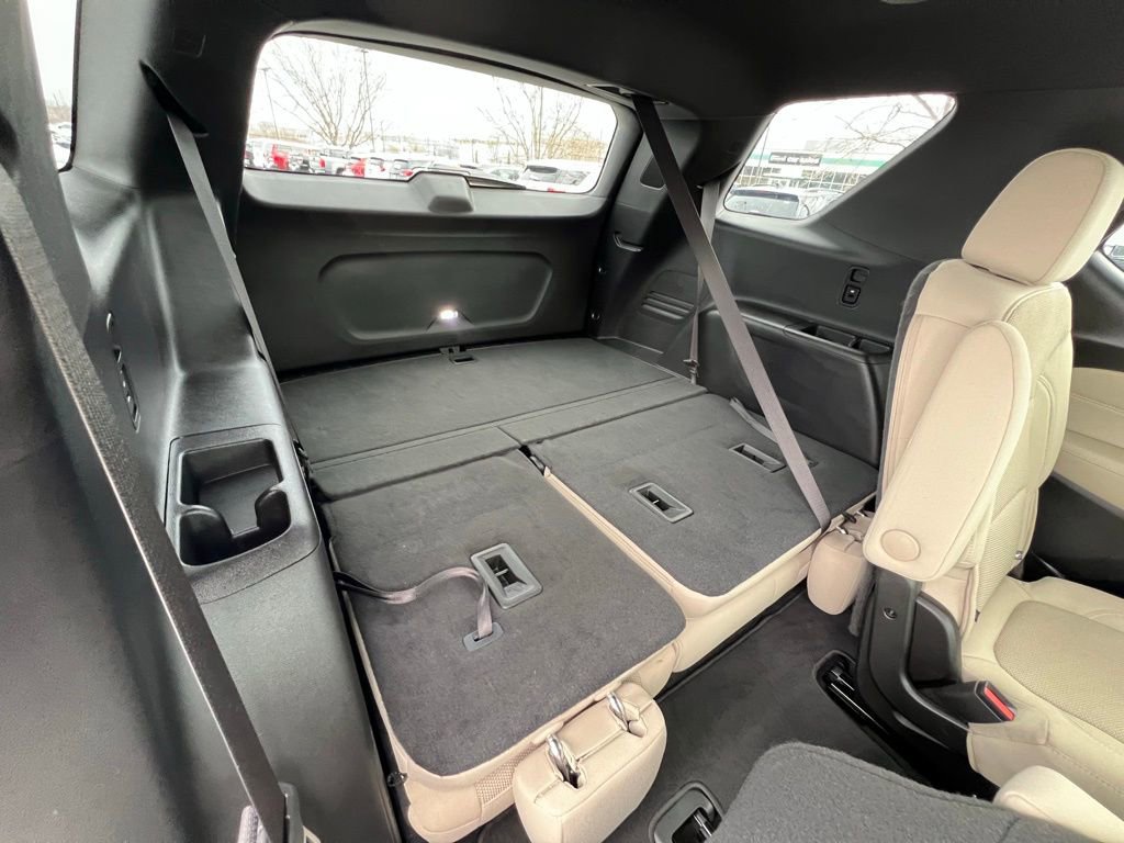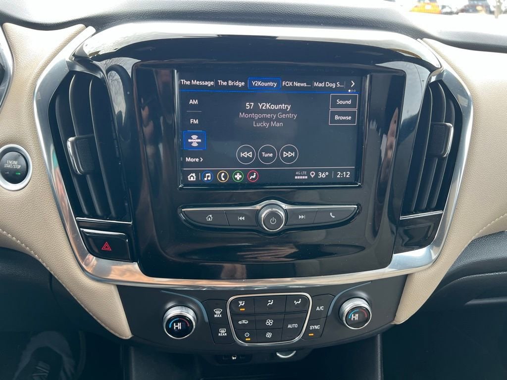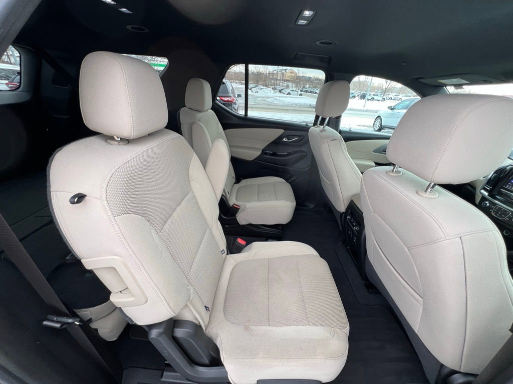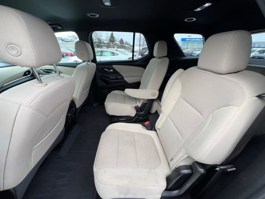 Our LT Cloth cabin provides comfortable accommodation for seven with premium cloth seats, eight-way power for the driver, a leather-wrapped steering wheel, tri-zone automatic climate control, cruise control, keyless access/ignition, and superior connectivity. Top Traverse technologies include a 7-inch touchscreen, WiFi compatibility, wireless Apple CarPlay®/Android Auto®, Bluetooth®, voice recognition, wireless charging, and six-speaker audio.