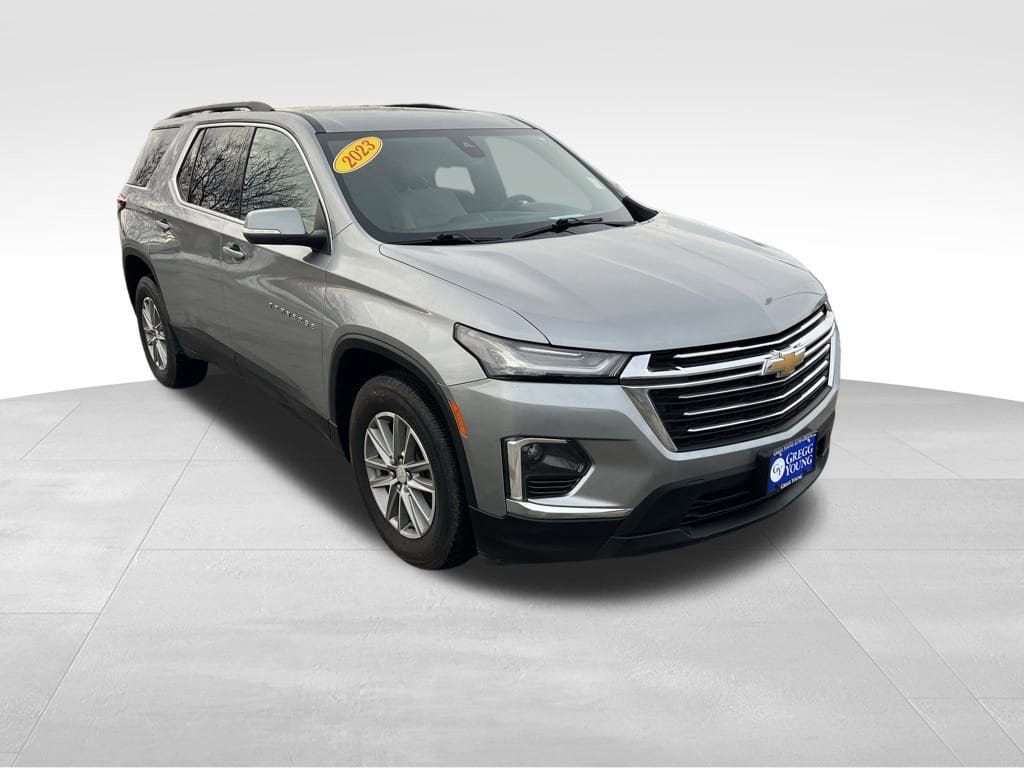 Families love our **One Owner**Accident Free**2023**Chevrolet**Traverse**LT**AWD**Apple CarPlay/Android Auto**Rear Camera** for its rewarding capability and upscale Sterling Gray Metallic appearance! Motivated by a 3.6 Liter V6 supplying 310hp connected to a 9 Speed Automatic transmission that's tuned to take on busy days. This All Wheel Drive SUV also sees nearly 25mpg on the highway with a refined exterior design. Our Traverse is a sleek head-turner with LED lighting, roof rails, bright dual-exhaust outlets, 18-inch alloy wheels, and heated power mirrors with built-in turn signals.