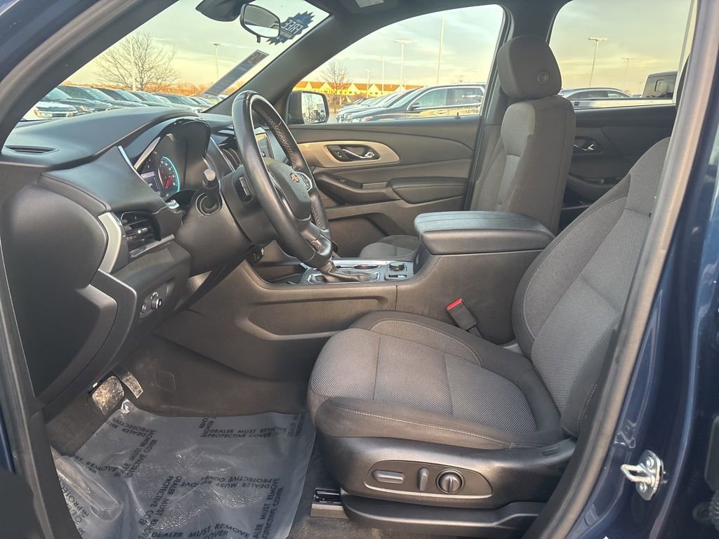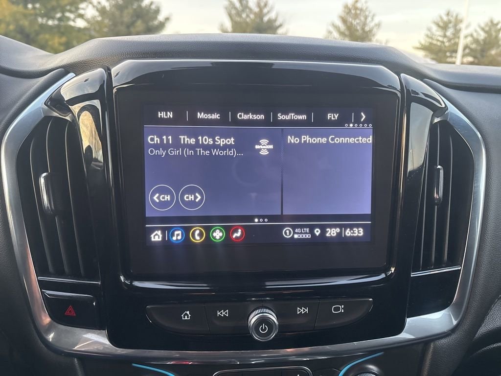 Our LT Cloth cabin provides comfortable accommodation for seven with premium cloth seats, heated front seats with eight-way power for the driver, a leather-wrapped steering wheel, tri-zone automatic climate control, cruise control, keyless access/ignition, and superior connectivity. Top Traverse technologies include a 7-inch touchscreen, WiFi compatibility, wireless Apple CarPlay®/Android Auto®, Bluetooth®, voice recognition, wireless charging, and six-speaker audio.