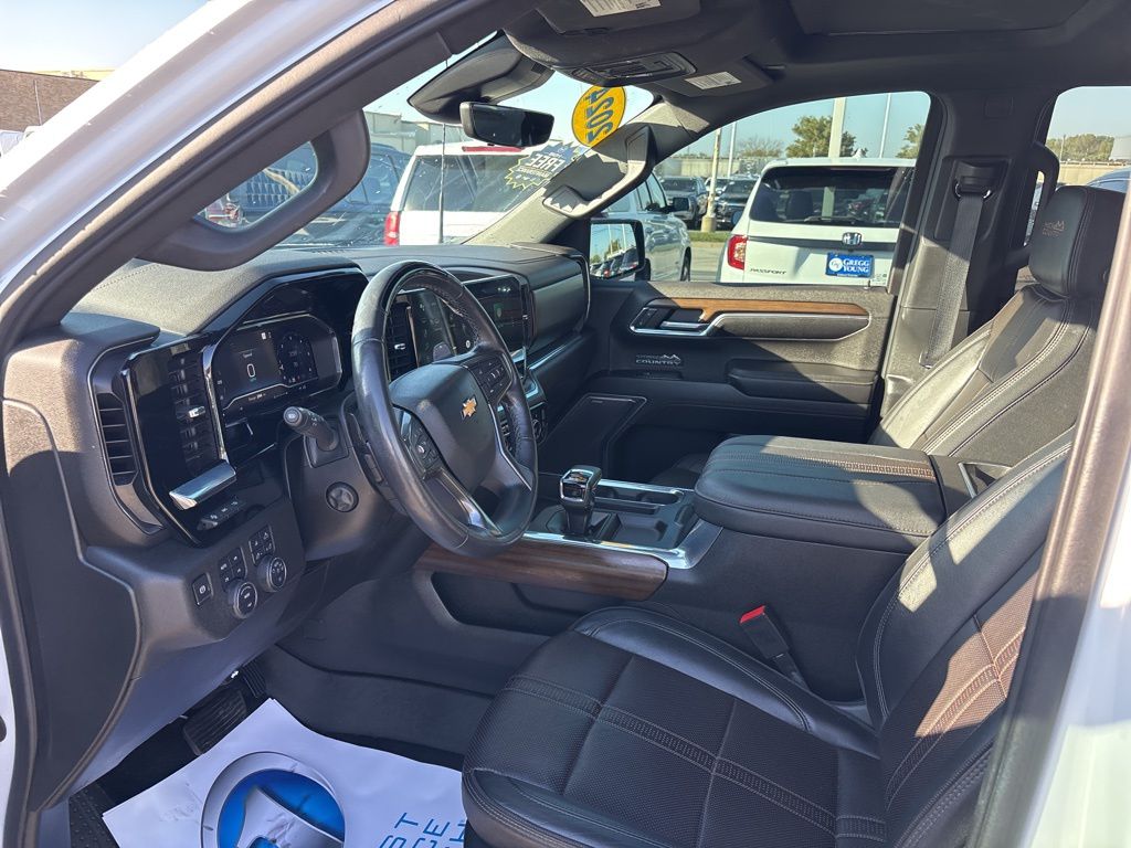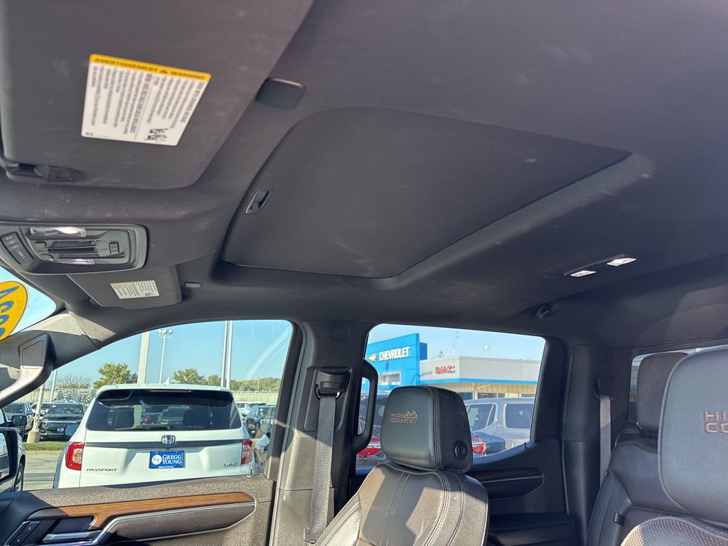 Our Diesel powered Accident Free, One Owner 2024 Chevrolet Silverado 1500 High Country Crew Cab 4X4 with the Premium Pack is an uplevel adventure machine in Iridescent Pearl Tricoat! Motivated by a TurboCharged 3.0 Liter DuraMax Diesel 6 Cylinder delivering 305hp and 495lb-ft of torque to a 10 Speed Automatic transmission. This Four Wheel Drive truck also boasts a 2-speed transfer case and high-capacity suspension for composed handling, and it sees nearly 27mpg on the highway. Style meets strength with chrome side steps, a spray-on bedliner, LED fog lamps, a power up/down tailgate, perimeter lighting, and our Premium Pack's sunroof and 22-inch wheels.