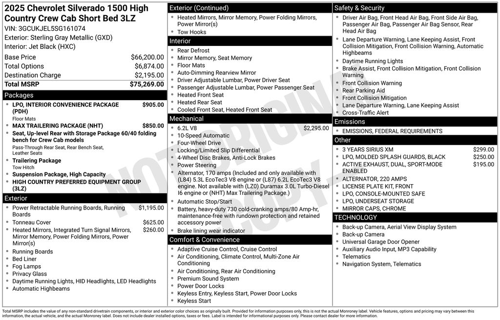 Chevrolet provides a fantastic finishing touch with impressive safety systems such as a bed-view camera, adaptive cruise control, trailer blind-spot monitoring, enhanced automatic braking, lane-keeping assistance, forward collision warning, pedestrian detection, HD surround vision, parking sensors, and more. When it's time for better trucking, it's time for our Silverado 1500 High Country! Save this Page and Call for Availability. We Know You Will Enjoy Your Test Drive Towards Ownership!