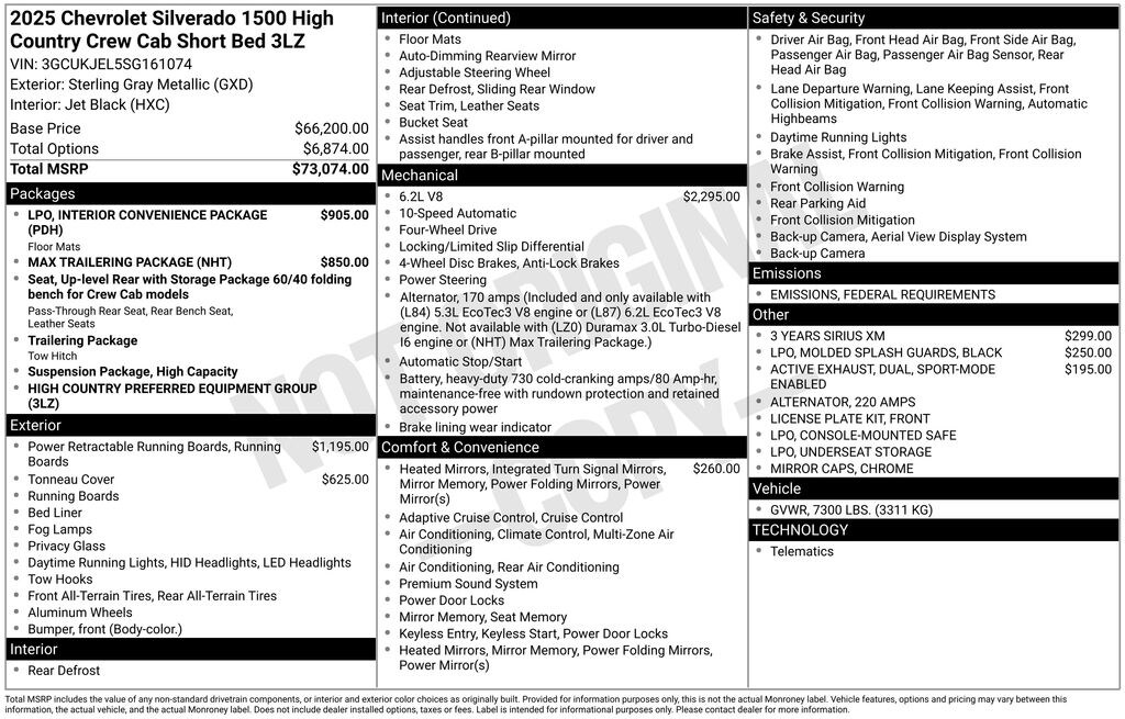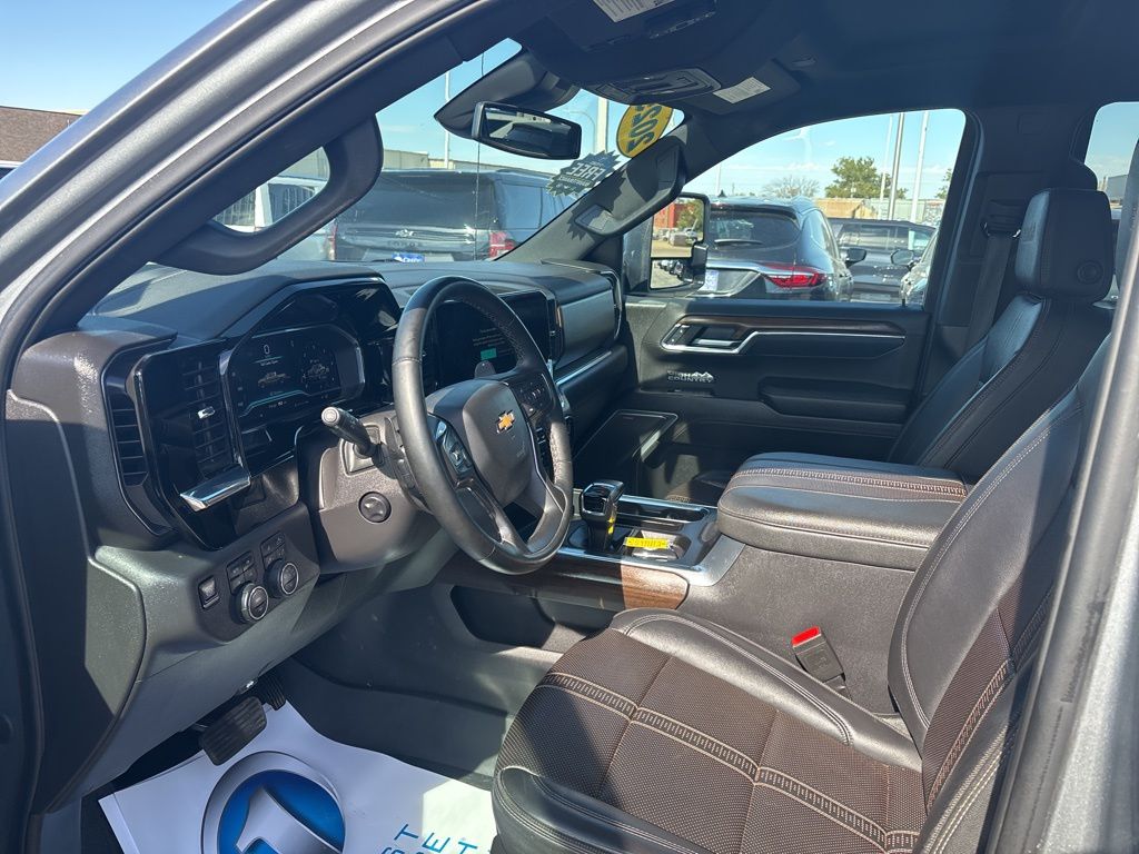 Highly capable, our Accident Free, One Owner 2025 Chevrolet Silverado 1500 High Country Crew Cab 4X4 is filled with features for better days in Sterling Gray Metallic! Powered by a 6.2 Liter V8 generating 420hp for a 10 Speed Automatic transmission. A high-capacity suspension helps you maintain your composure during extreme challenges, and this Four Wheel Drive truck achieves nearly 20mpg on the highway. Go ahead and show off since our Silverado 1500 is ready for attention with LED lighting, fog lamps, power up/down tailgate, 20-inch wheels, chrome side steps, perimeter lighting, and a spray-on bedliner.