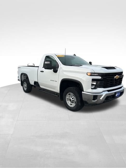 Our **One Owner**Accident Free**2025**Chevrolet**Silverado 2500**W/T**Regular Cab**4X4**Snow Plow Prep/Camper Package**Spray-on bedliner** works hard and treats you right in Summit White! Powered by a 6.6 Liter V8 generating 401hp for a 10 Speed Allison Automatic transmission engineered for easy towing and hauling. Take command of this Four Wheel Drive truck to enjoy composed handling with a 2-speed transfer case, auto-locking rear differential, and impressive maneuverability. Well-equipped for the daily grind, our Silverado 2500 boasts rear/side bed steps, cargo-bed lighting, vertical trailering mirrors, a hitch receiver, a locking tailgate, black recovery hooks, and matching bumpers.A thoughtful layout and rewarding features greet you in our Work Truck cabin. It's all about functional comfort and convenience with supportive seats, single-zone climate control, power accessories, a 12V power outlet, and must-have technologies. A 7-inch touchscreen leads the way and lets you connect with WiFi compatibility, wireless Apple CarPlay®/Android Auto®, Bluetooth®, and an ear-catching sound system.Chevrolet knows the importance of on-the-job safety, so it supplies automatic braking, forward collision alert, a rearview camera, a following distance indicator, hitch guidance, Stabilitrak stability/traction control, trailer sway control, hill start assistance, and more for your peace of mind. Drive our Silverado 2500 W/T and feel ready to do it all! Save this Page and Call for Availability. We Know You Will Enjoy Your Test Drive Towards Ownership!