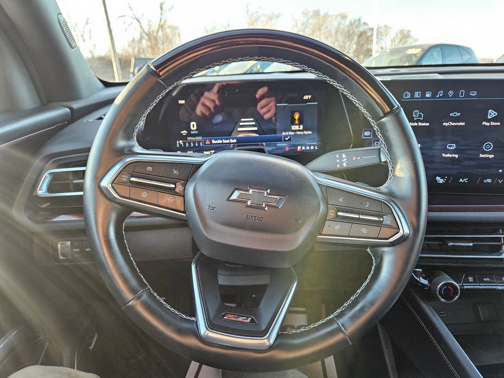 Load up the whole family and get comfortable in our Z71 cabin thanks to heated front seats with eight-way power for the driver, folding second/third rows, heated-wrapped steering wheel, tri-zone automatic climate control, keyless access/ignition, remote start, and a Google-based infotainment system. It bundles an intelligent 17.7-inch touchscreen, an 11-inch driver display, Google Services compatibility w/nav, WiFi compatibility, wireless charging, Bluetooth, Apple CarPlay, Android Auto, and a six-speaker sound system.