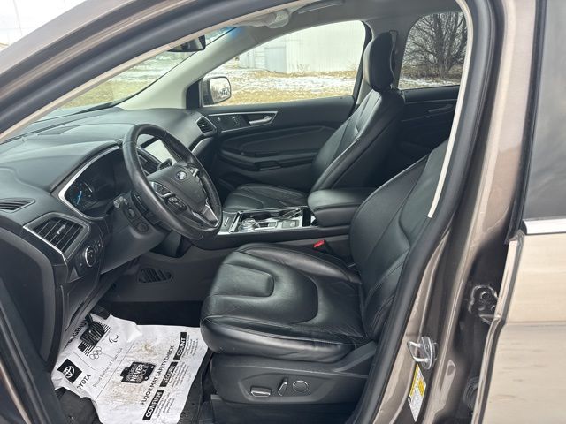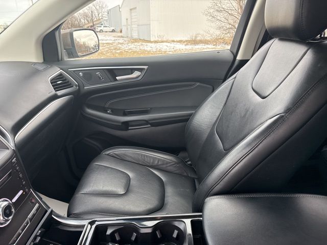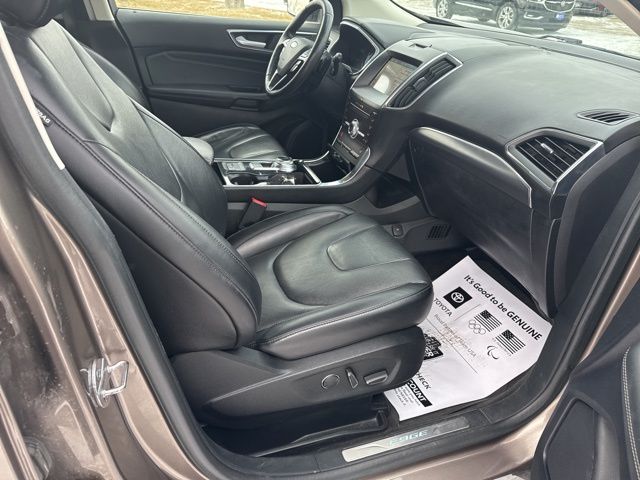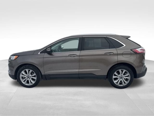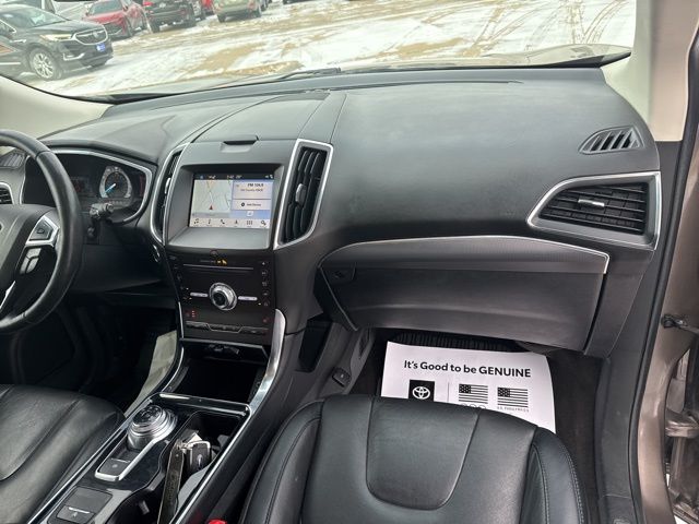 Sporting bold sophistication and innovative design, our **2019**Ford**Edge**Titanium**AWD**Cold Weather Package**Ford Co-Pilot360 Assist+** in Stone Gray is an ideal choice! Powered by a TurboCharged 2.0 Liter EcoBoost 4 Cylinder that offers 245hp connected to an 8 Speed Automatic transmission for that performance you demand. Our All Wheel Drive SUV has ample power, easy maneuverability, and precise handling while earning nearly 29mpg on the highway. A certain European flair to the elegant exterior of our Edge Titanium lets you stand out from the crowd. Take note of the hands-free liftgate, bright grille, alloy wheels, and LED signature lighting.