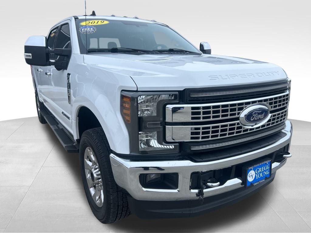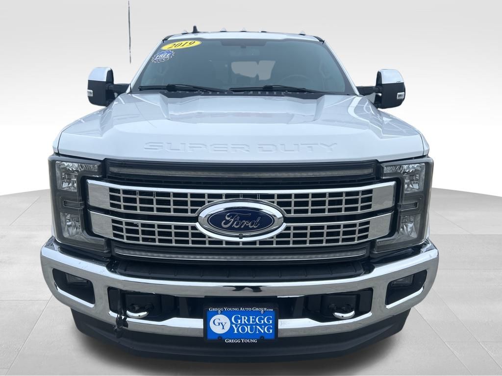 Our remarkable **2019**Ford**F-250**Lariat**Crew Cab**4X4**FX4 Off-Road Package**Value Package** that's tougher than ever in Oxford White! Powered by a TurboCharged 6.7 Liter PowerStroke Diesel V8 delivers 925lb-ft of torque and 450hp connected to a TorqShift 6 Speed Automatic transmission. This Four Wheel Drive Lariat helps manage even the most stringent tasks without a second thought, thanks to massive payload/towing capabilities. Take charge of your day with its commanding stance that shows off alloy wheels, LED lighting, running boards, tonneau cover, and a distinct chrome 2-bar-style grille.