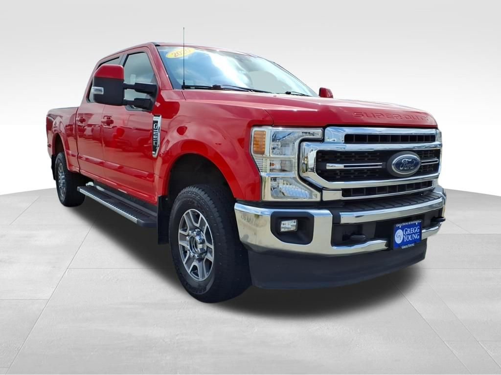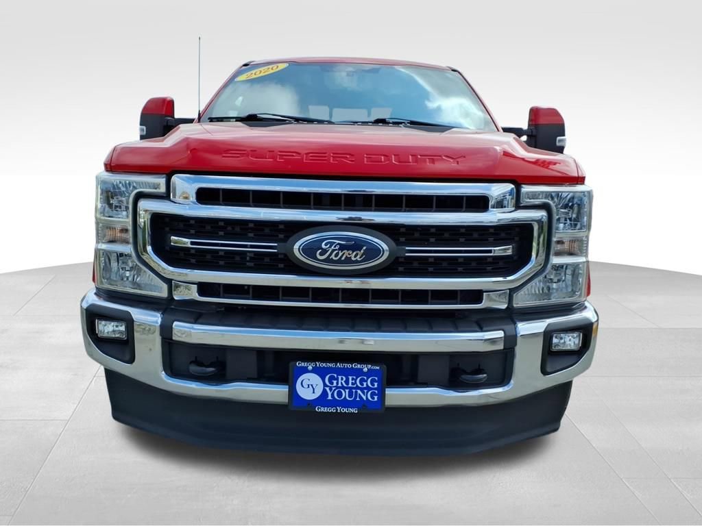 Embrace your workday, and every day, with our **2020**Ford**F-250**Lariat**Crew Cab**4X4**Heated and Cooled Leather Seats**FX4 Off-Road Package** that takes a confident stance in Race Red! Driven by a muscular 6.2 Liter V8 that delivers 385hp connected to Ford's TorqShift 6 Speed Automatic transmission so you can tow, haul, and pass with ease. This Four Wheel Drive Lariat captures attention with a chrome grille, quad-beam halogen headlamps, running boards, fog lamps, chrome steel bumpers, a front air dam, alloy wheels, spray-on bedliner, and heated power-folding PowerScope trailer mirrors with power telescoping capability.