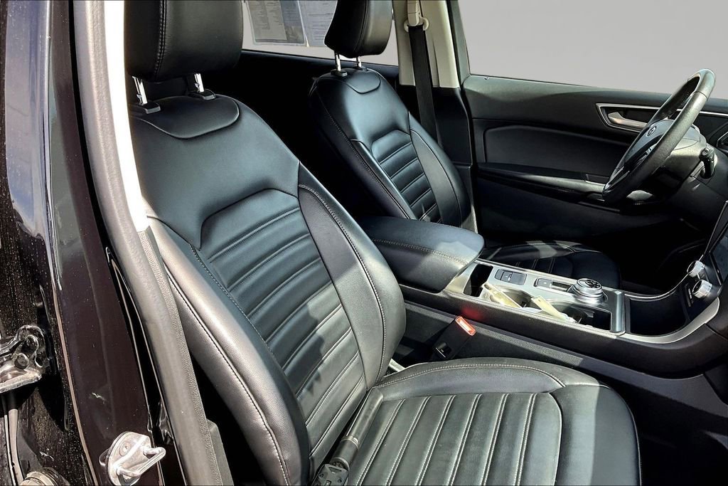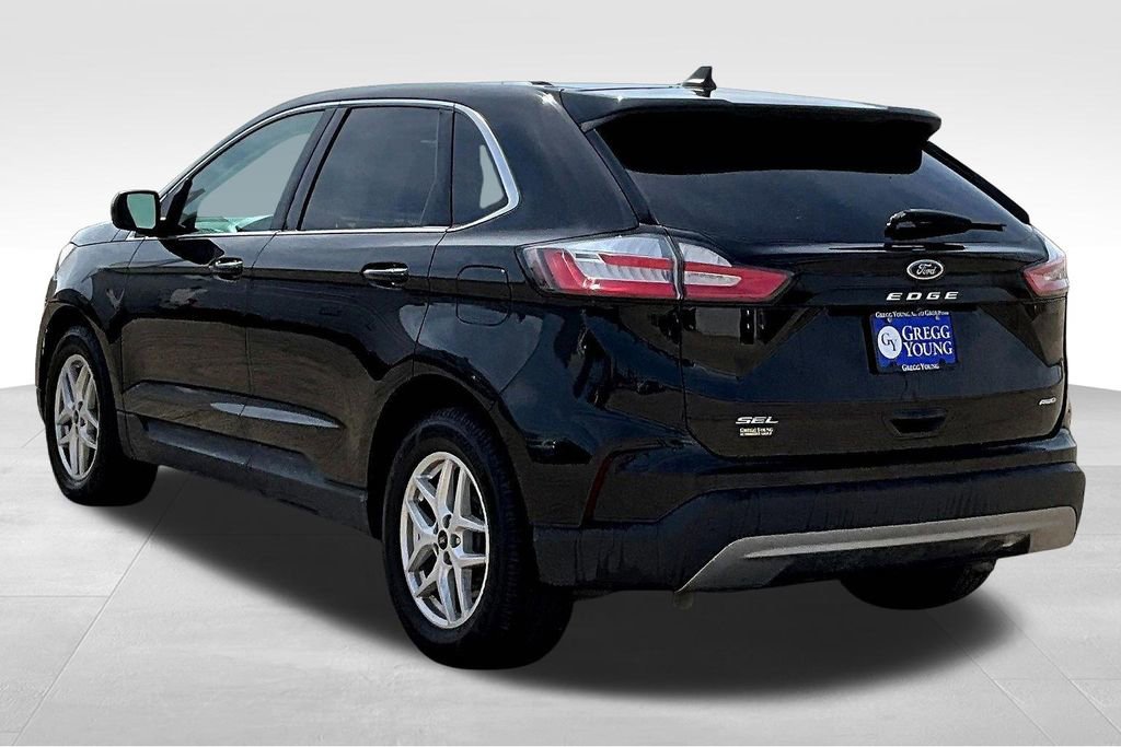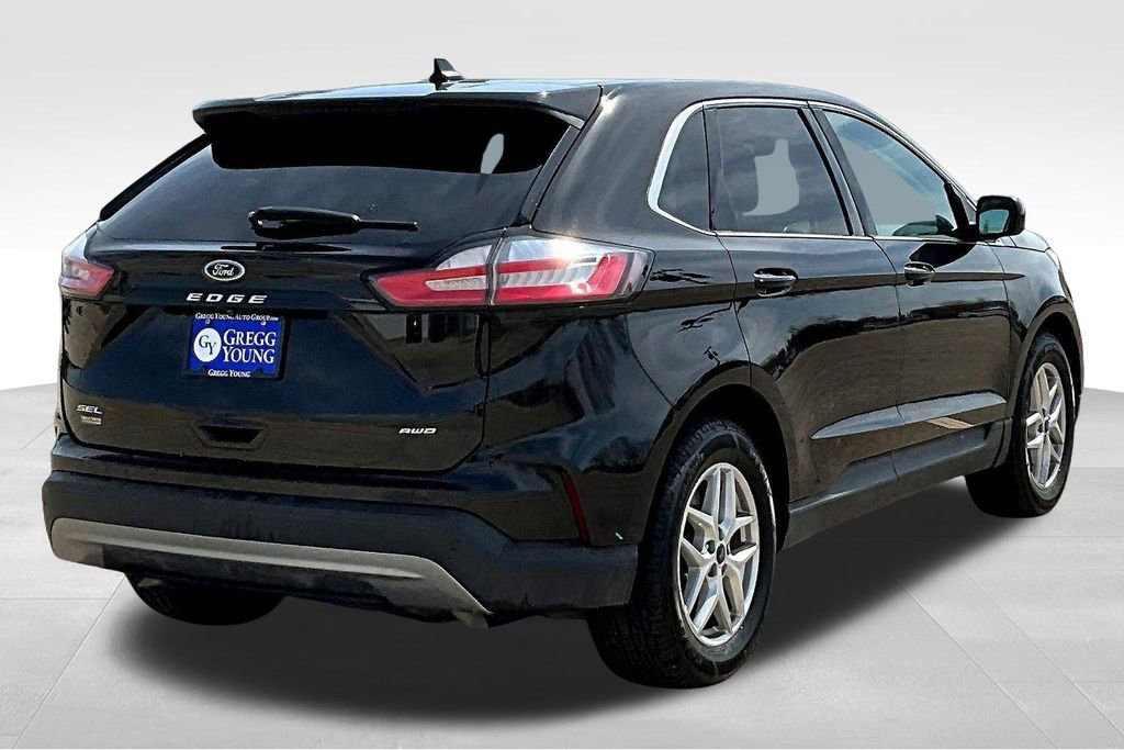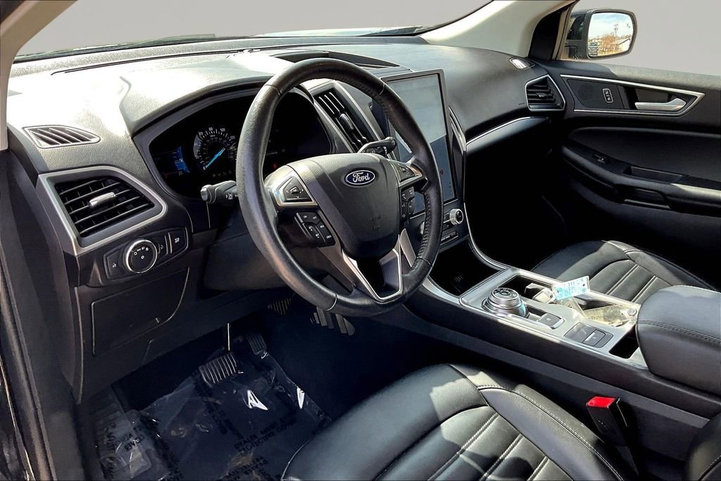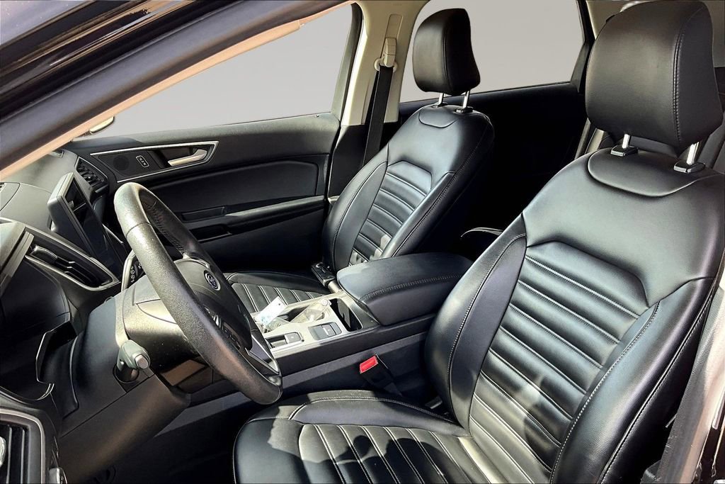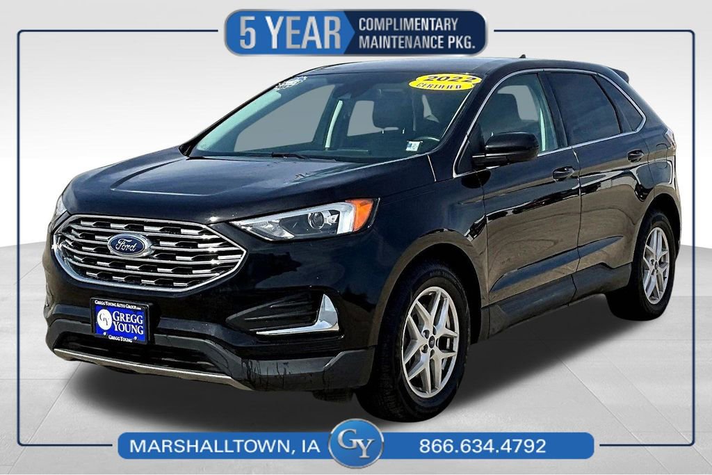 Enjoy a fresh approach to travel with our 2022 Ford Edge SEL AWD in Agate Black Metallic! Motivated by a TurboCharged 2.0 Liter EcoBoost 4 Cylinder offering 250hp connected to an 8 Speed Automatic transmission to go from town to trail with ease. This All Wheel Drive SUV also achieves nearly 28mpg on the highway with the kind of responsive handling that brings a smile to your face. You'll have the Edge when it comes to design, too, with LED lighting, dual-exhaust outlets, a bright grille, heated power mirrors, and bold alloy wheels.