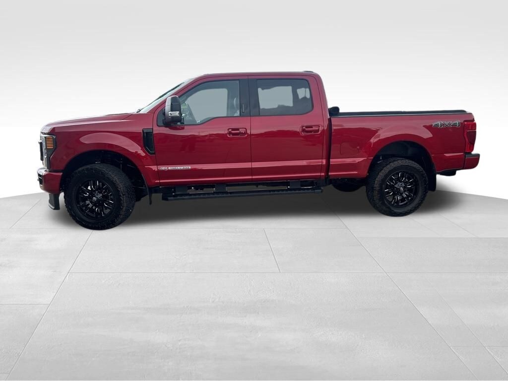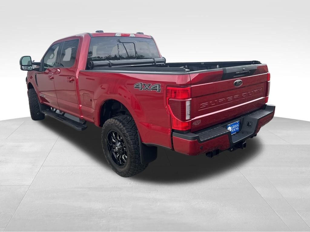 Our Diesel powered **2022**Ford**F-250**Lariat**Crew Cab**4X4**Ultimate Package**Navigation** has refined features and remarkable strength in Red! Motivated by a TurboCharged 6.7 Liter PowerStroke Diesel V8 offering 475hp and 1,050lb-ft of torque to a 10 Speed Automatic transmission for amazing capability. This Four Wheel Drive truck also inspires you to take on your biggest jobs, and it catches your attention with classic SuperDuty good looks. A mighty chrome grille sets the tone to go with chromed-steel bumpers, fog lamps, bold alloy wheels, Ford's PowerScope trailer mirrors, and our package that adds LED box lighting and a power-release tailgate with an access step.