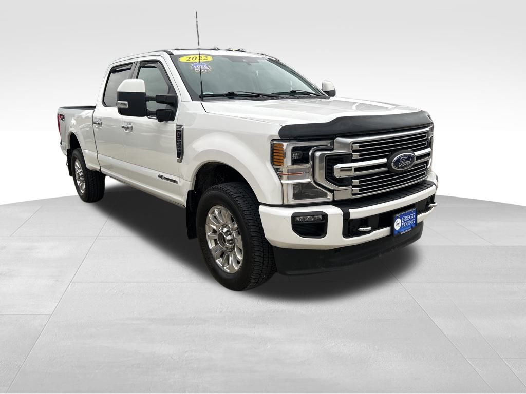 Our Diesel powered **2022**Ford**F-250**Limited**Crew Cab**4X4**FX4 Off-Road Package**Navigation** delivers luxury and capability for the long haul in Star White! Motivated by a TurboCharged 6.7 Liter PowerStroke Diesel V8 generating 475hp and 1,050lb-ft of torque for a 10 Speed Automatic transmission. This Four Wheel Drive truck also has plenty of high-tech Ford features to maximize its impressive strength, including adaptive steering and onboard scales to check cargo weights. A bold design further enhances our Ford F-250 with LED Dynamic Bending headlights, fog lamps, power running boards, alloy wheels, a power tailgate, and a dual-pane sunroof.