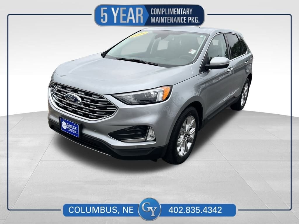 You'll love our **One Owner**Accident Free**2024**Ford**Edge**Titanium**AWD**Heated Seats**Heated Steering Wheel** that shows off style and luxury in Iconic Silver Metallic! Powered by a TurboCharged 2.0 Liter EcoBoost 4 Cylinder supplying 250hp to an 8 Speed Automatic transmission with a sophisticated rotary gear selector. Composed handling helps you keep comfortably on the move, and this All Wheel Drive SUV returns nearly 28mpg on the highway. Bold Edge design comes into the picture with LED signature lighting, fog lamps, a hands-free liftgate, bright-tipped integrated exhaust outlets, a chrome grille, a rear spoiler, and eye-catching 20-inch alloy wheels.