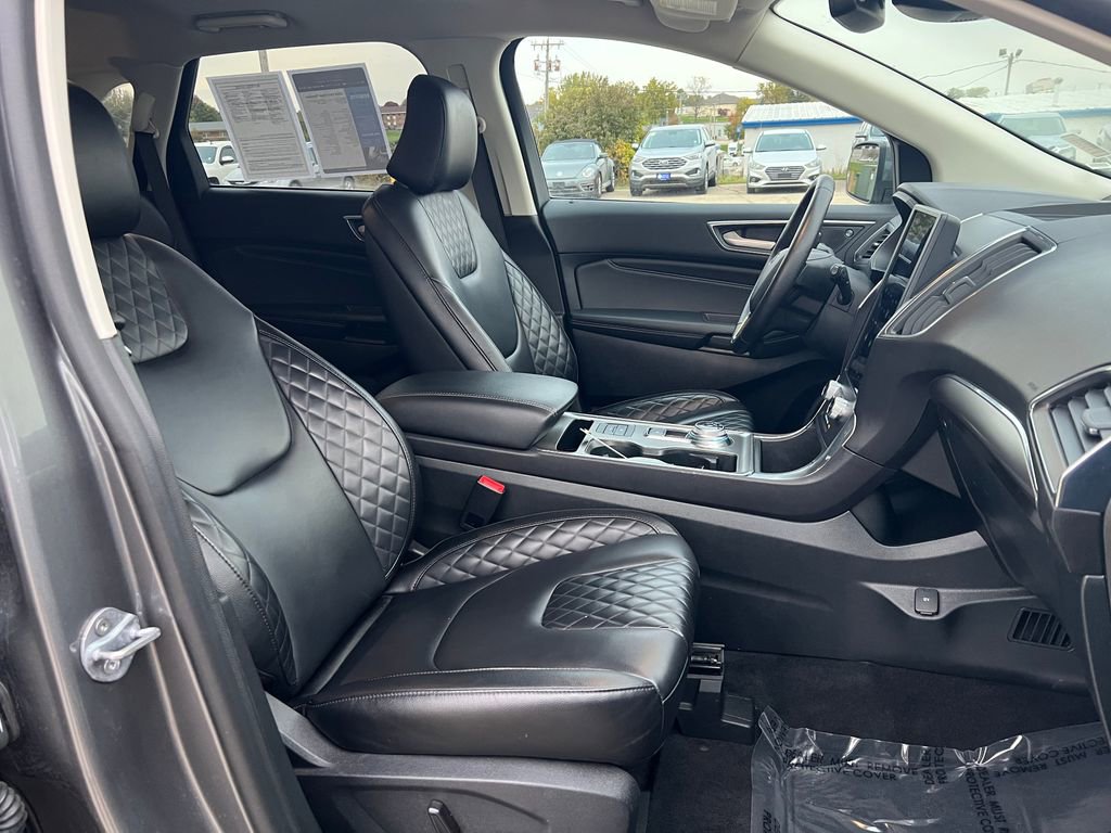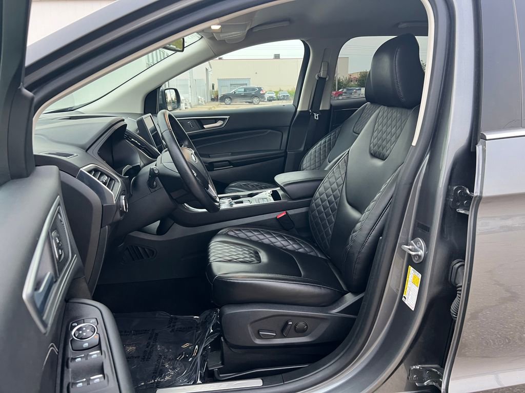 You'll love our **One Owner**Accident Free**2024**Ford**Edge**Titanium**AWD**Heated Seats**Heated Steering Wheel** that shows off style and luxury in Carbonized Gray Metallic! Powered by a TurboCharged 2.0 Liter EcoBoost 4 Cylinder supplying 250hp to an 8 Speed Automatic transmission with a sophisticated rotary gear selector. Composed handling helps you keep comfortably on the move, and this All Wheel Drive SUV returns nearly 28mpg on the highway. Bold Edge design comes into the picture with LED signature lighting, fog lamps, a hands-free liftgate, bright-tipped integrated exhaust outlets, a chrome grille, a rear spoiler, and eye-catching 20-inch alloy wheels.Our Titanium cabin is impressive, featuring heated ActiveX power front sport seats, a heated leather steering wheel, dual-zone automatic climate control, remote start, keyless access, pushbutton ignition, and a handy 110V/150W power outlet. Leading Edge technologies include a 12-inch touchscreen, dual 4.2-inch driver displays, Android Auto®, Apple CarPlay®, WiFi compatibility, Bluetooth®, wireless charging, voice control, and a Bang & Olufsen surround-sound audio system.Rest assured that Ford surrounds you with safety by supplying automatic braking, blind-spot monitoring, a rearview camera, lane-keeping assistance, tire-pressure monitoring, rear cross-traffic alert, hill-start assistance, and more. Own our Edge Titanium, and cut through the crowd in style! Save this Page and Call for Availability. We Know You Will Enjoy Your Test Drive Towards Ownership!