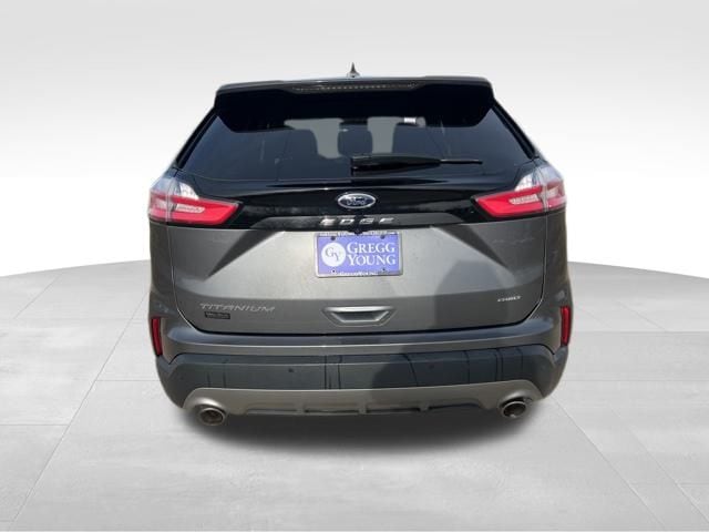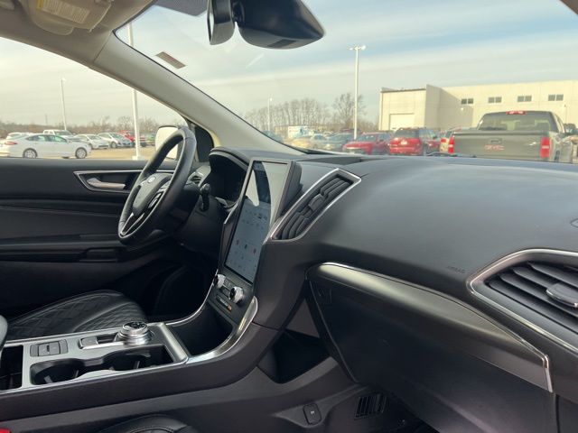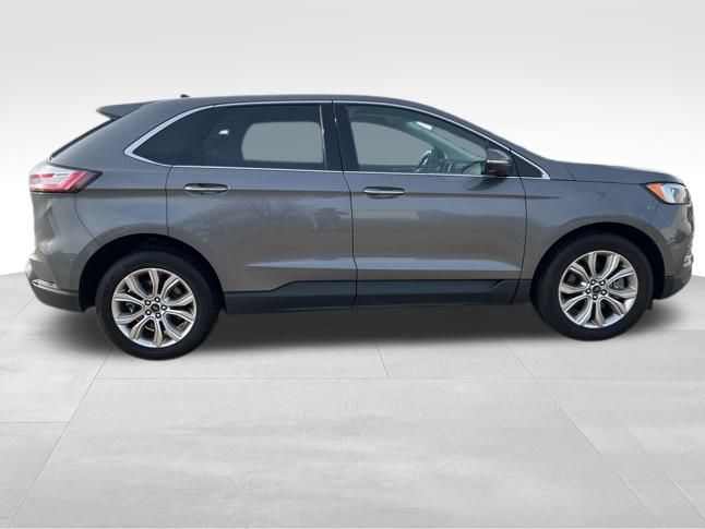 Drive our **2024**Ford**Edge**Titanium**AWD**Heated Seats**Heated Steering Wheel** to experience the luxury of versatility in Carbonized Gray Metallic! Powered by a TurboCharged 2.0 Liter EcoBoost 4 Cylinder supplying 250hp to an 8 Speed Automatic transmission with a sophisticated rotary gear selector. Composed handling helps you keep comfortably on the move, and this All Wheel Drive SUV returns nearly 28mpg on the highway. Bold Edge design comes into the picture with LED signature lighting, fog lamps, a hands-free liftgate, bright-tipped integrated exhaust outlets, a chrome grille, a rear spoiler, and eye-catching 20-inch alloy wheels.
