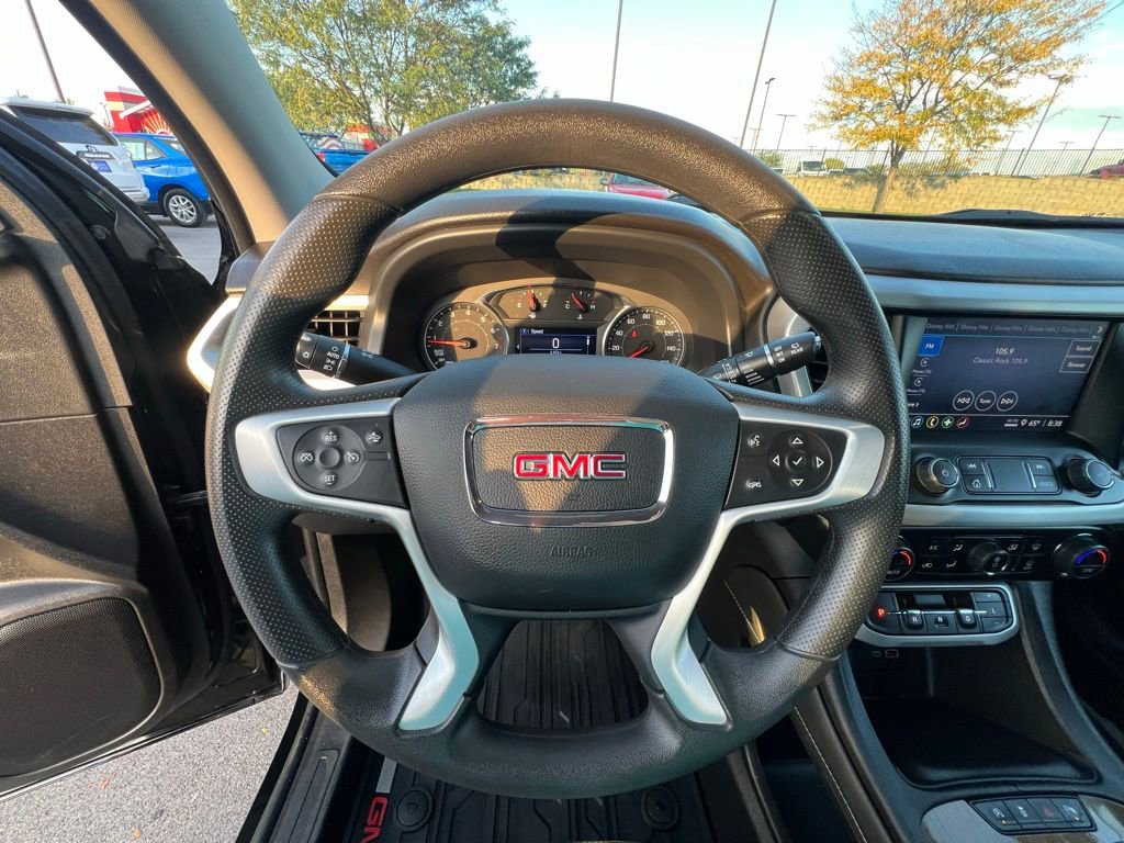 Our versatile **Accident Free**2023**GMC**Acadia**SLE**AWD**Driver Convenience Package**Heated Seats** is here for your family with strength and style in Ebony Twilight Metallic! Powered by a TurboCharged 2.0 Liter 4 Cylinder serving up 228hp paired to a 9 Speed Automatic transmission for a refined driving experience. Impressively easy to maneuver, this All Wheel Drive SUV also returns nearly 27mpg on the highway. Our Acadia leads the way with signature LED lighting, dual exhaust outlets, heated power mirrors with built-in turn signals, alloy wheels, and our package's brushed aluminum roof rails and a hands-free liftgate.