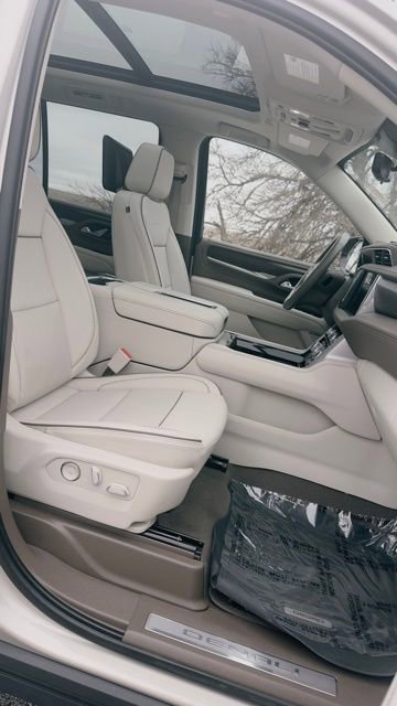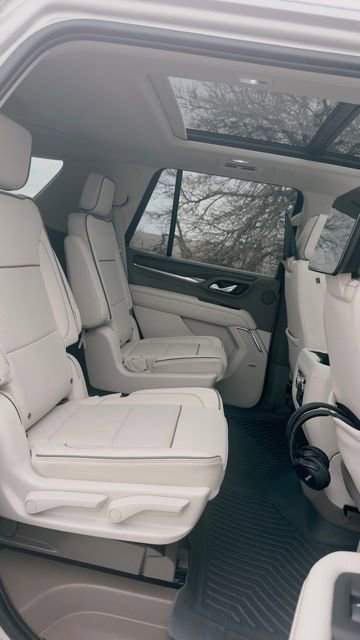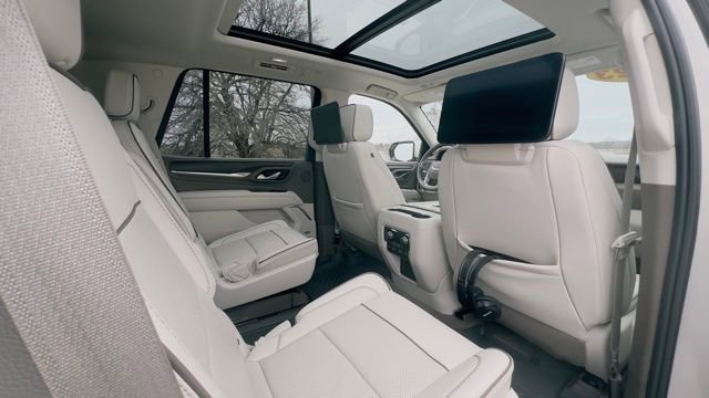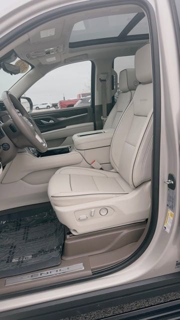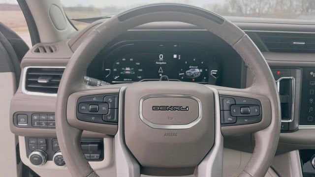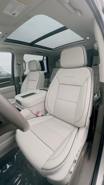 Simply stunning, our Denali cabin treats you to heated/ventilated leather power front and heated second-row seats, a power-folding third row, a heated/wrapped power steering wheel, tri-zone automatic climate control, keyless access/ignition, remote start, and a power sliding center console. Staying connected is simple with a 12-inch driver display, a 10.2-inch touchscreen, full-color navigation, Google built-in, wireless Android Auto/Apple CarPlay, WiFi compatibility, Bluetooth, wireless charging, and Bose Centerpoint audio.