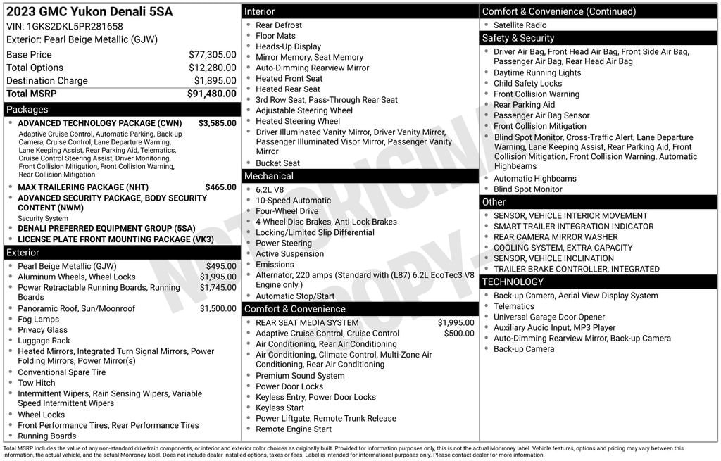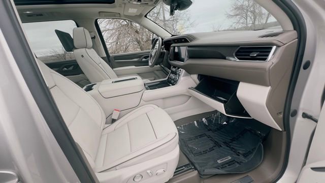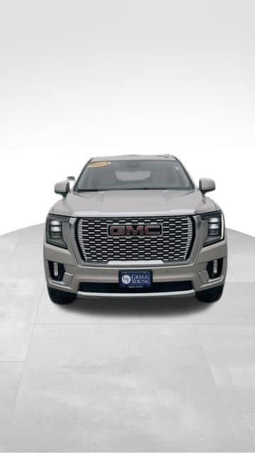 Our fantastic One Owner, Accident Free 2023 GMC Yukon Denali 4WD with the Advanced Technology Pack is one of the world's finest family haulers in Pearl Beige Metallic! Motivated by a 6.2 Liter EcoTec3 V8 serving up 420hp connected to a 10 Speed Automatic transmission. This Four Wheel Drive SUV also boasts Magnetic Ride Control, an Autotrac two-speed transfer case, and hill-descent control for maximum adventure potential, and it scores nearly 18mpg on the highway. Sophisticated good looks come into view with LED lighting, fog lamps, dual exhaust outlets, a panoramic sunroof, 22-inch wheels, assist steps, heated power mirrors, bright roof rails, and a hands-free liftgate.
