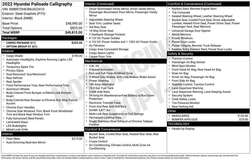 Our family friendly 2022 Hyundai Palisade Calligraphy AWD treats you right in a luxurious Steel Graphite finish! Powered by a 3.8 Liter V6 delivering 291hp to a paddle-shifted 8 Speed Automatic transmission for premium performance. Families also love the smooth ride of this All Wheel Drive SUV, which achieves nearly 24mpg on the highway. Well-equipped for what comes next, our Palisade has a sophisticated appearance that attracts attention with an exclusive grille design, LED lighting, a dual-pane sunroof, chrome-finish skid plates, a hands-free liftgate, 20-inch alloy wheels, and heated power mirrors with approach lights.