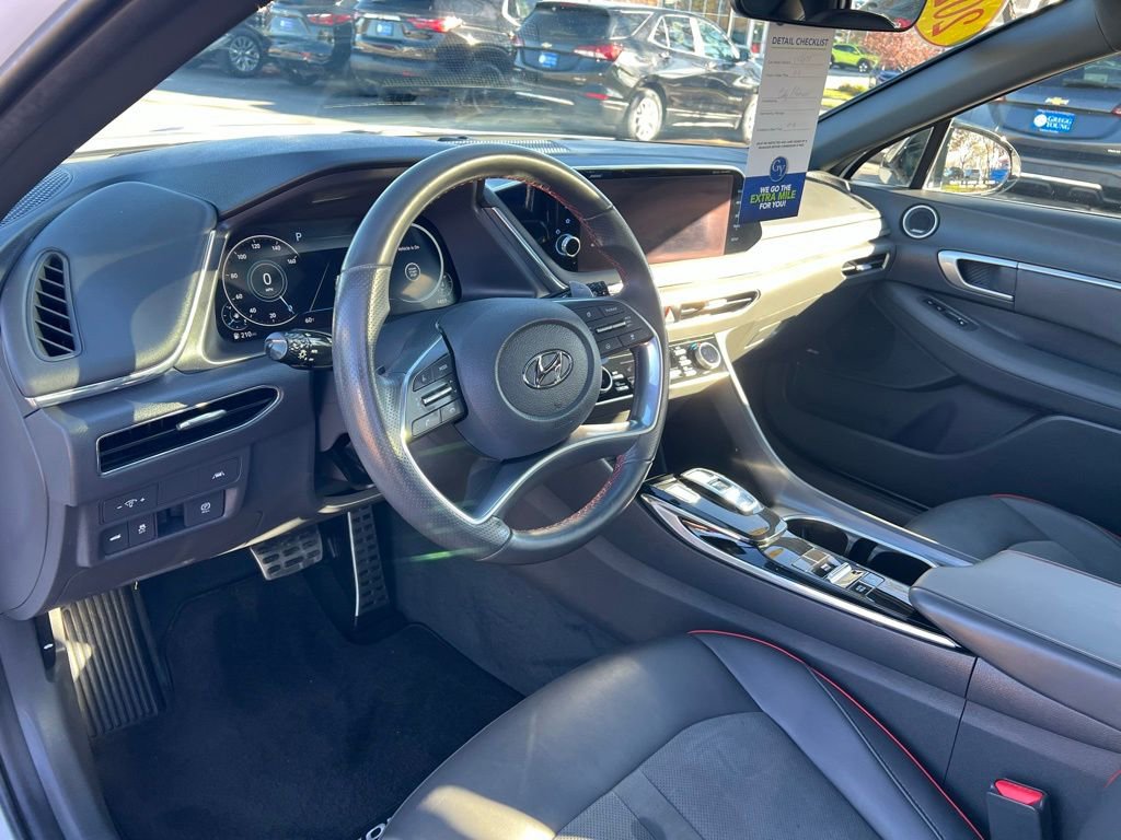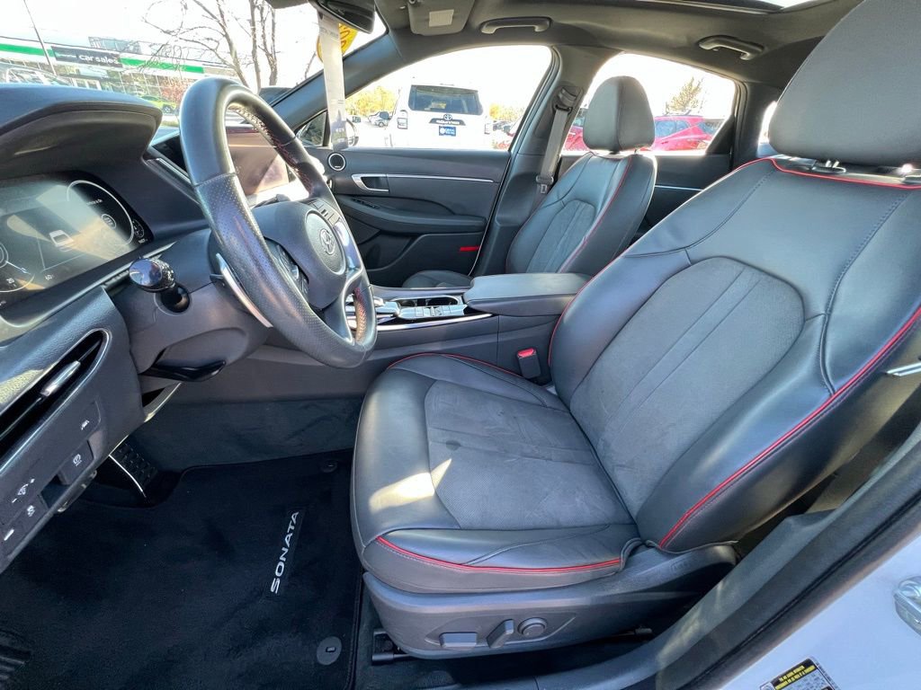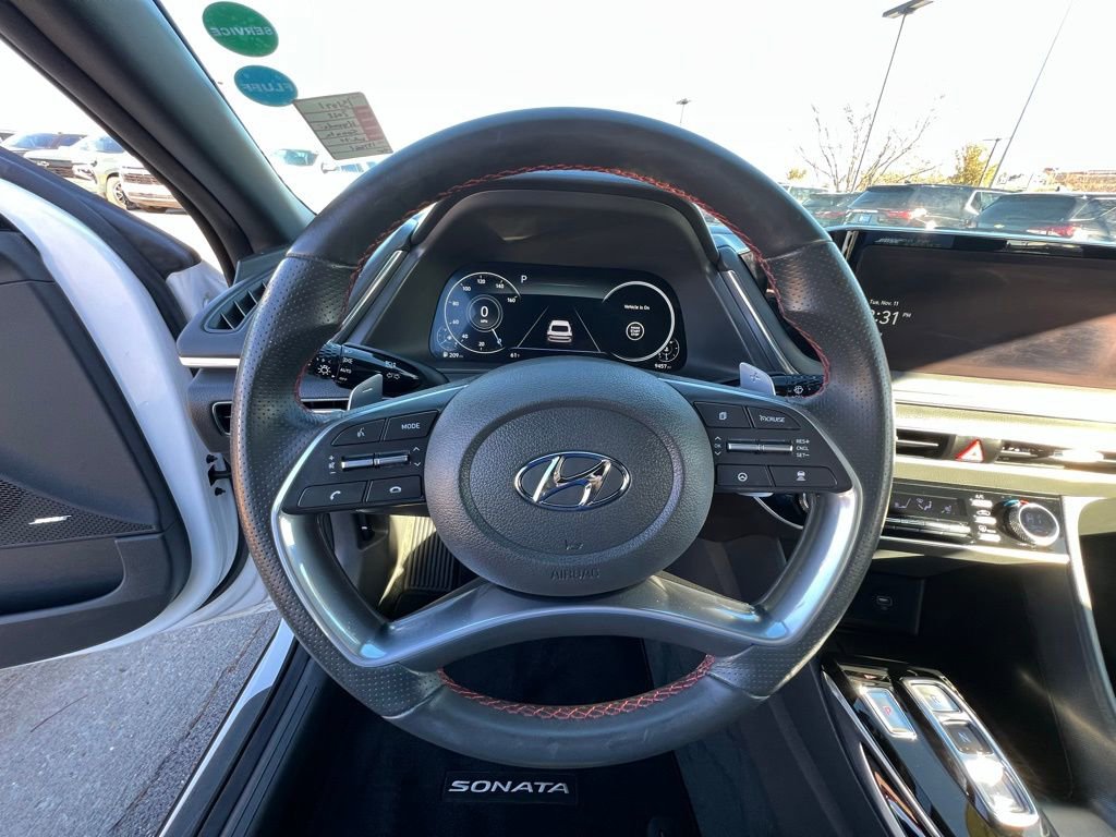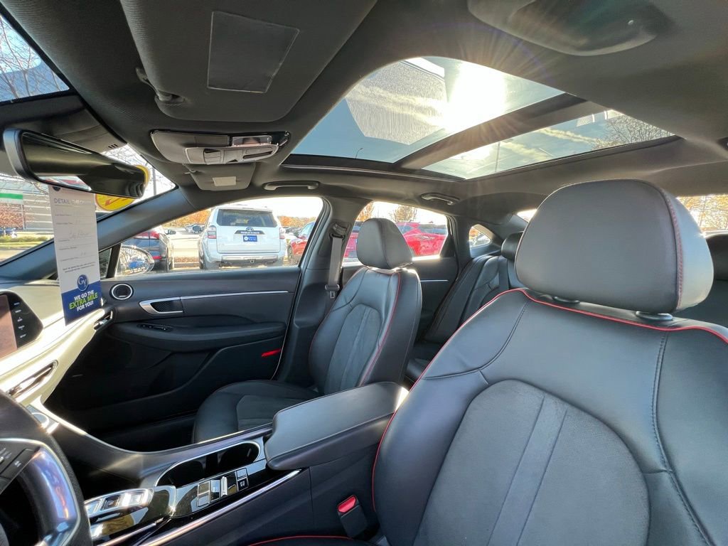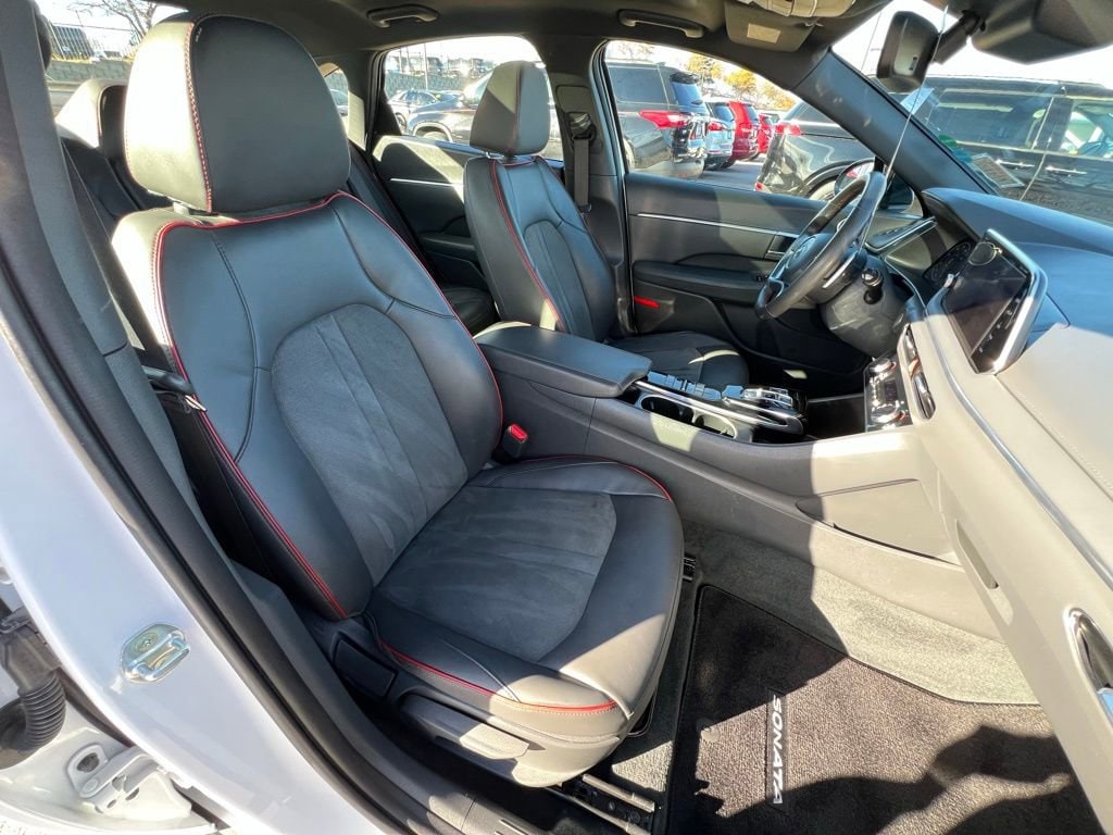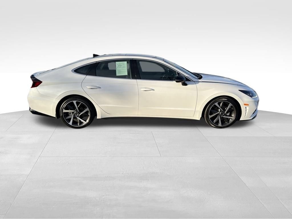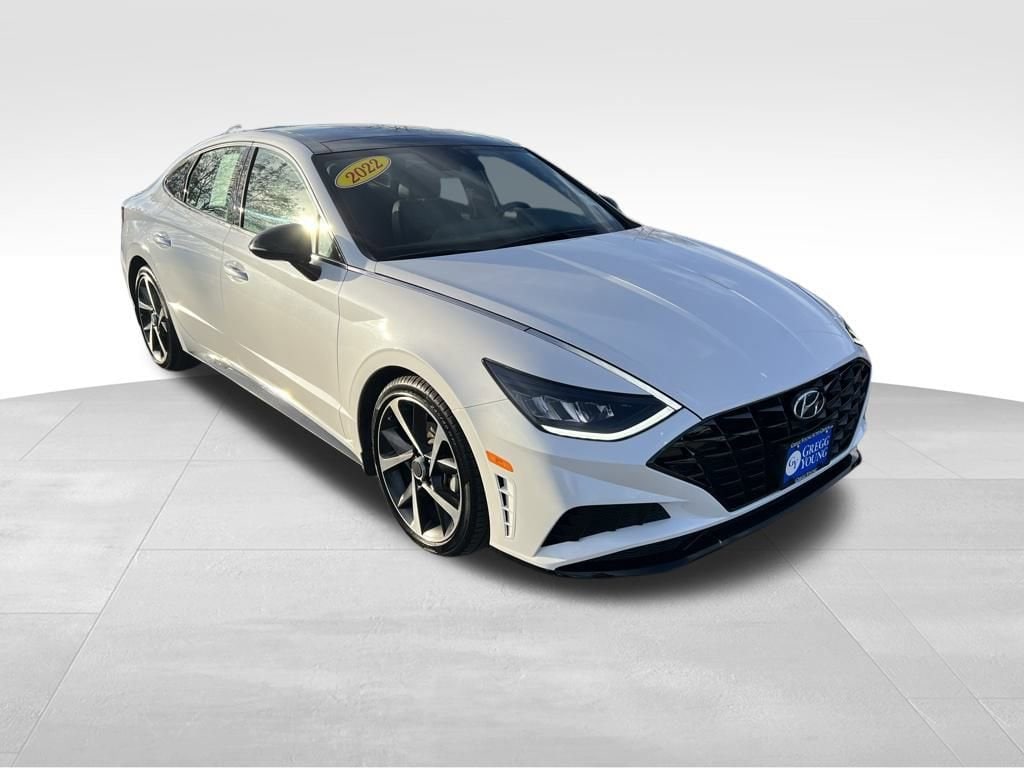 Our **One Owner**Accident Free**2022**Hyundai**Sonata**SEL Plus**Sedan**Navigation**Sunroof** adds a boost of excitement to your driving in White! Powered by a TurboCharged 1.6 Liter 4 Cylinder generating 180hp for an 8 Speed Shiftronic Automatic transmission for brisk acceleration. This Front Wheel Drive sedan also enhances your travel with a multimode performance system, and it returns nearly 37mpg on the highway. Our Sonata's sleek look stirs the senses, while top-shelf details extend to a panoramic sunroof, LED lighting, sport-style bumpers, twin-tipped exhaust, alloy wheels, and a hands-free trunk.