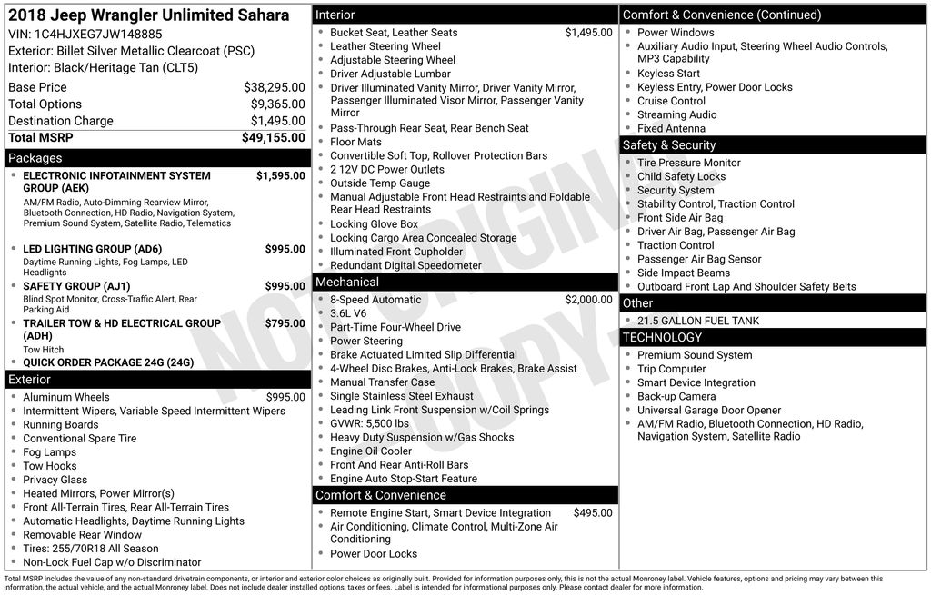 Climb up into our Sahara, which offers supportive seats, and enjoy the amenities designed to maximize your experience while driving, such as power windows/locks, keyless entry, an auto-dimming rearview mirror, a leather-wrapped steering wheel, air conditioning, available satellite radio for all of your audio needs, full-color navigation, and Uconnect® voice command with Bluetooth® to keep you connected on the go!