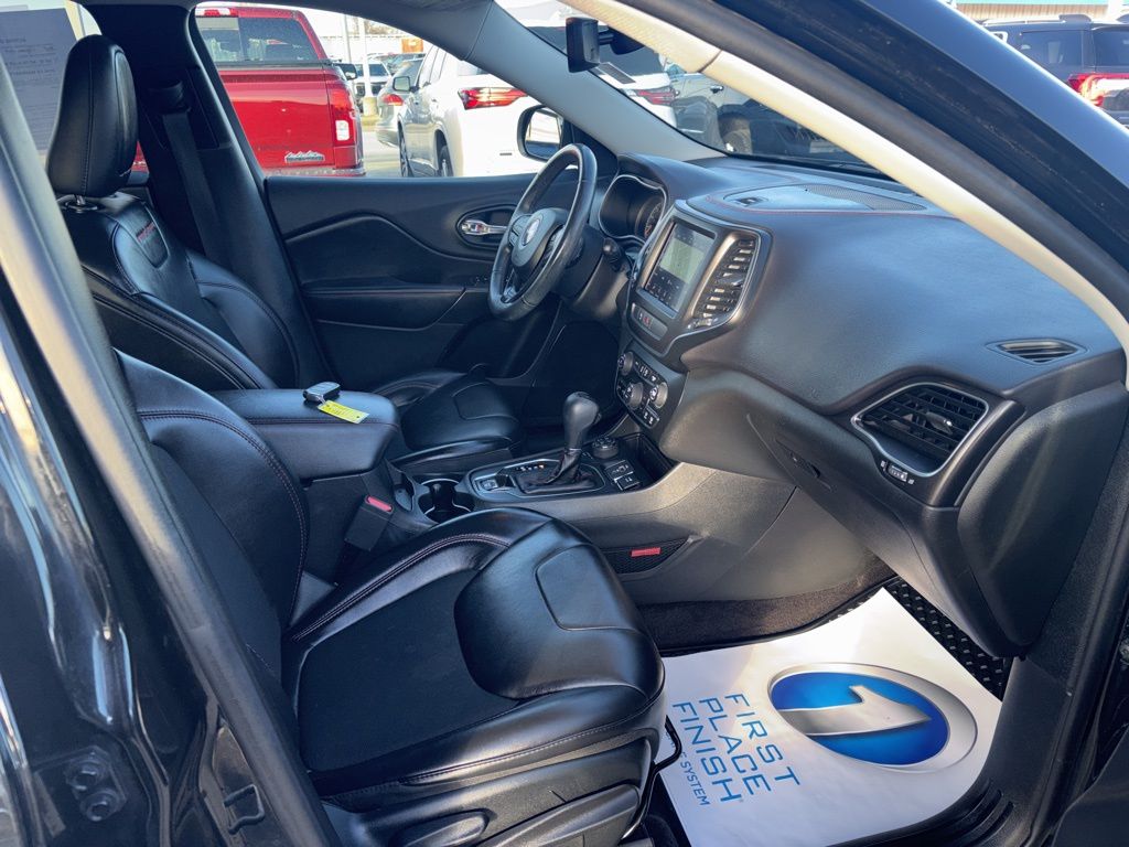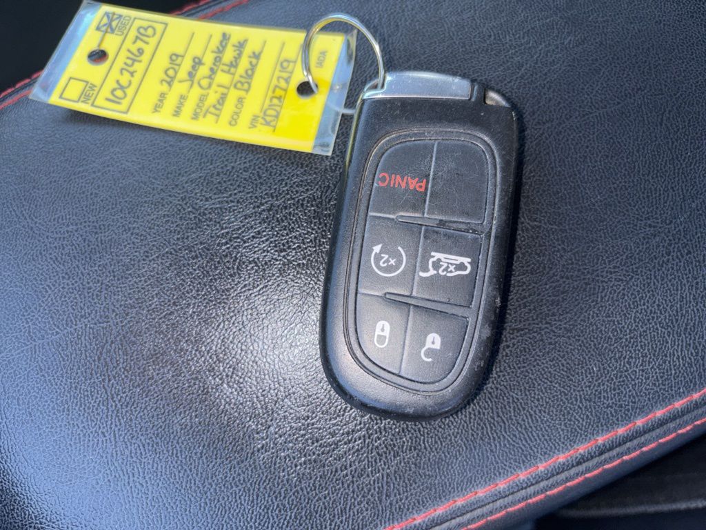 Expand your boundaries in our 2019 Jeep Cherokee Trailhawk 4X4 with the Cold Weather Package that's on display in Diamond Black Crystal Granite! Powered by a 3.2 Liter Pentastar V6 that generates 271hp paired to a 9 Speed Automatic transmission that's tough enough to keep up with your active lifestyle. This Four Wheel Drive SUV rides on an off-road suspension with a 1-inch lift and features Selec-Terrain traction management for authentic capability, and it returns nearly 24mpg on the highway. Combining classic Jeep style elements with a modern and aerodynamic design, our Cherokee is accented by LED lighting, fog lamps, a bold hood decal, and rugged fender flares over off-road alloy wheels.