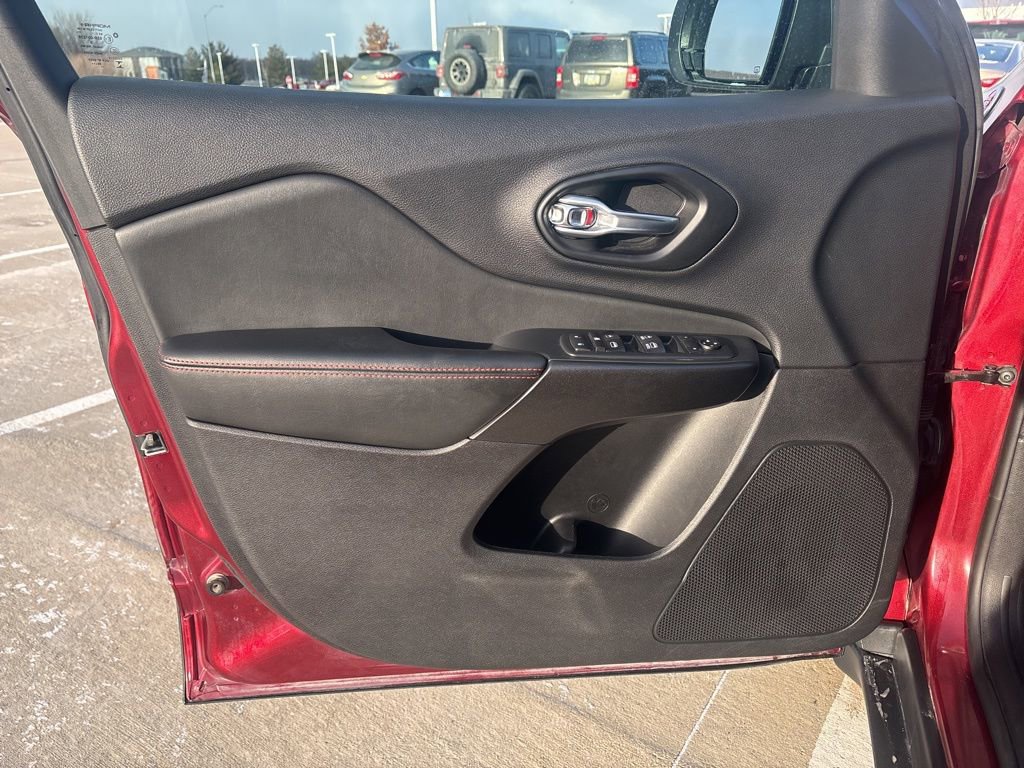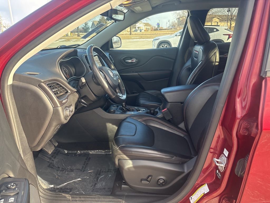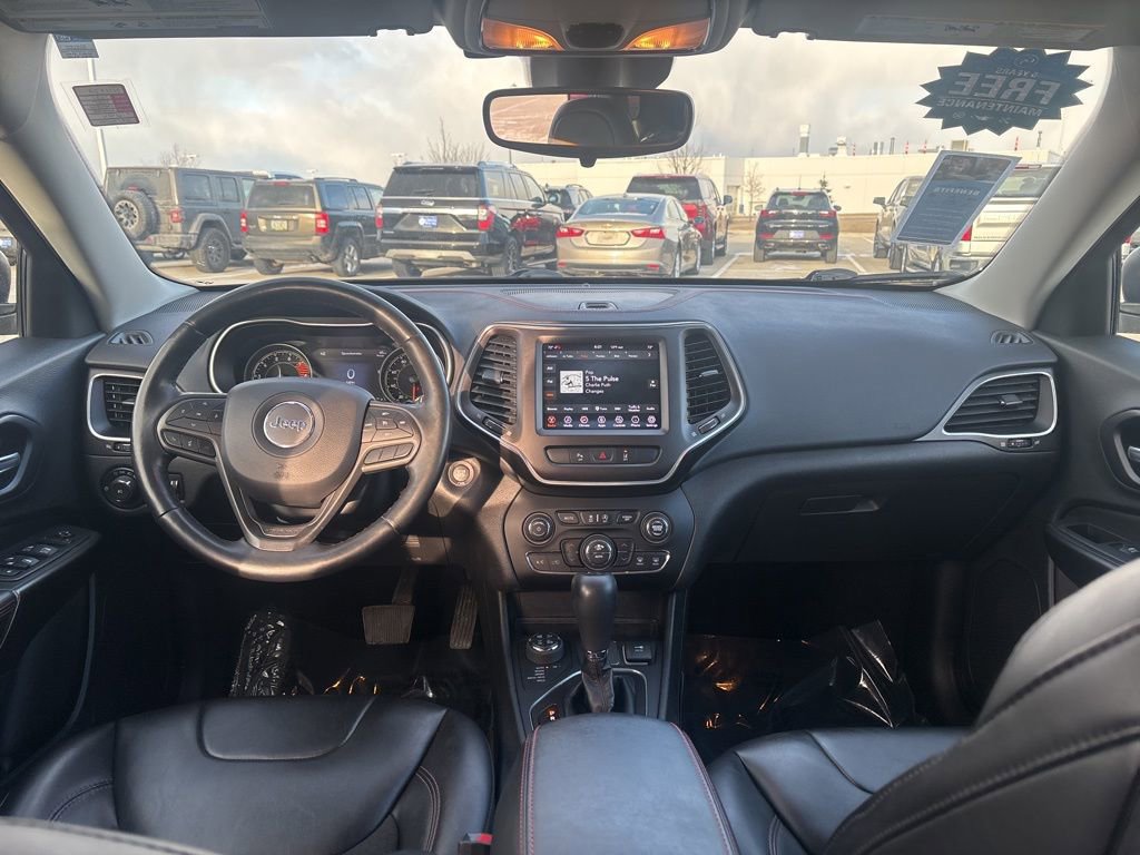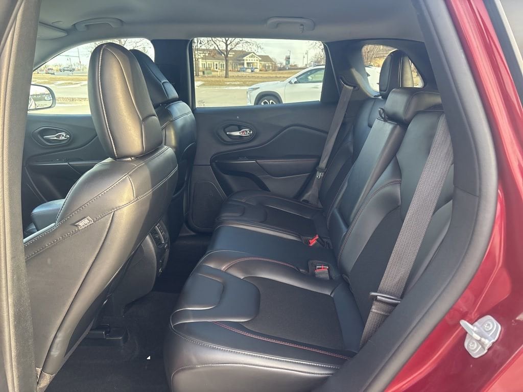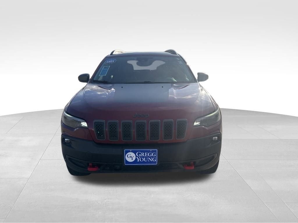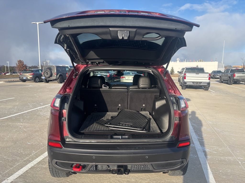 Amazingly capable, our **2021**Jeep**Cherokee**Trailhawk**4X4**Apple CarPlay/Android Auto**Rear Camera** in Velvet Red Pearl makes molehills out of mountains! Powered by a robust 3.2 Liter Pentastar V6 providing 271hp connected to a 9 Speed Automatic transmission for confidence on tough terrain. This rugged Four Wheel Drive SUV also achieves nearly 24mpg on the highway and makes the most of its modern Jeep style with LED lighting, fog lamps, heated power mirrors, roof rails, and eye-catching alloy wheels.