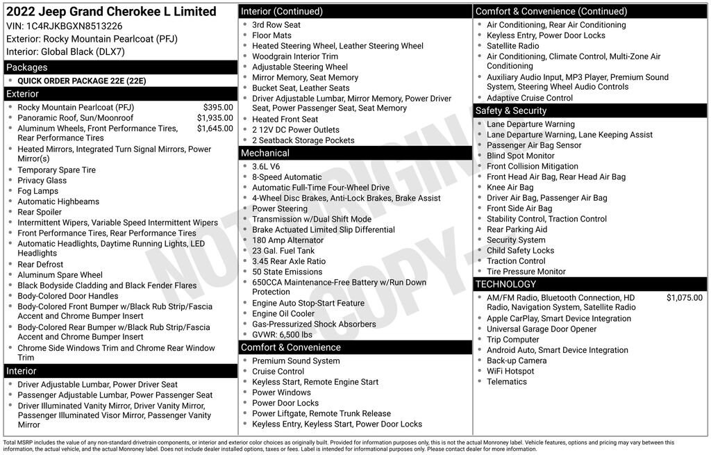 The right choice for any adventure, our **2022**Jeep**Grand Cherokee L**Limited**4X4**Navigation**Sunroof** rides with remarkable strength and style in Rocky Mountain Pearl! Powered by a 3.6 Liter Pentastar V6 supplying 293hp matched to an 8 Speed Automatic transmission. This Four Wheel Drive SUV also boasts Selec-Terrain traction management to master multiple surfaces, and it returns nearly 25mpg on the highway. Bold Jeep styling gets your attention with LED lighting, fog lamps, chrome accents, a sunroof, a power liftgate, roof rails, alloy wheels, and heated power mirrors with built-in turn signals.Load up the family in our Limited cabin, where you and your crew are pampered by heated Capri leather front and second-row seats, a versatile third row, a heated leather steering wheel, tri-zone automatic climate control, soft-touch surfaces, keyless entry/ignition, and remote start. Staying connected is a top priority for today's drivers, so Jeep supplies a 10.25-inch digital instrument cluster, an 8.4-inch touchscreen, full-color navigation, wireless Android Auto®/Apple CarPlay®, WiFi compatibility, Bluetooth®, and premium six-speaker audio.Travel safer with intelligent Jeep technologies such as a backup camera, a blind-spot monitor, automatic braking, forward collision warning, adaptive cruise control, active lane management, and more. You never know what's coming next, but our Grand Cherokee L Limited is here to help! Save this Page and Call for Availability. We Know You Will Enjoy Your Test Drive Towards Ownership! We offer PRE-APPROVAL programs so call (515) 256-4010 to get started today! At Gregg Young Chevrolet... We'll Go The Extra Mile For You. We have an app for that! Download the Gregg Young Chevrolet application directly to your iPhone or Android.