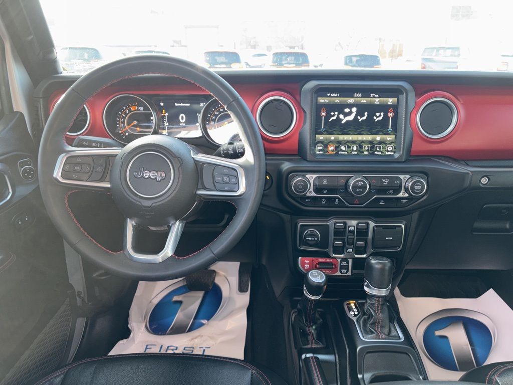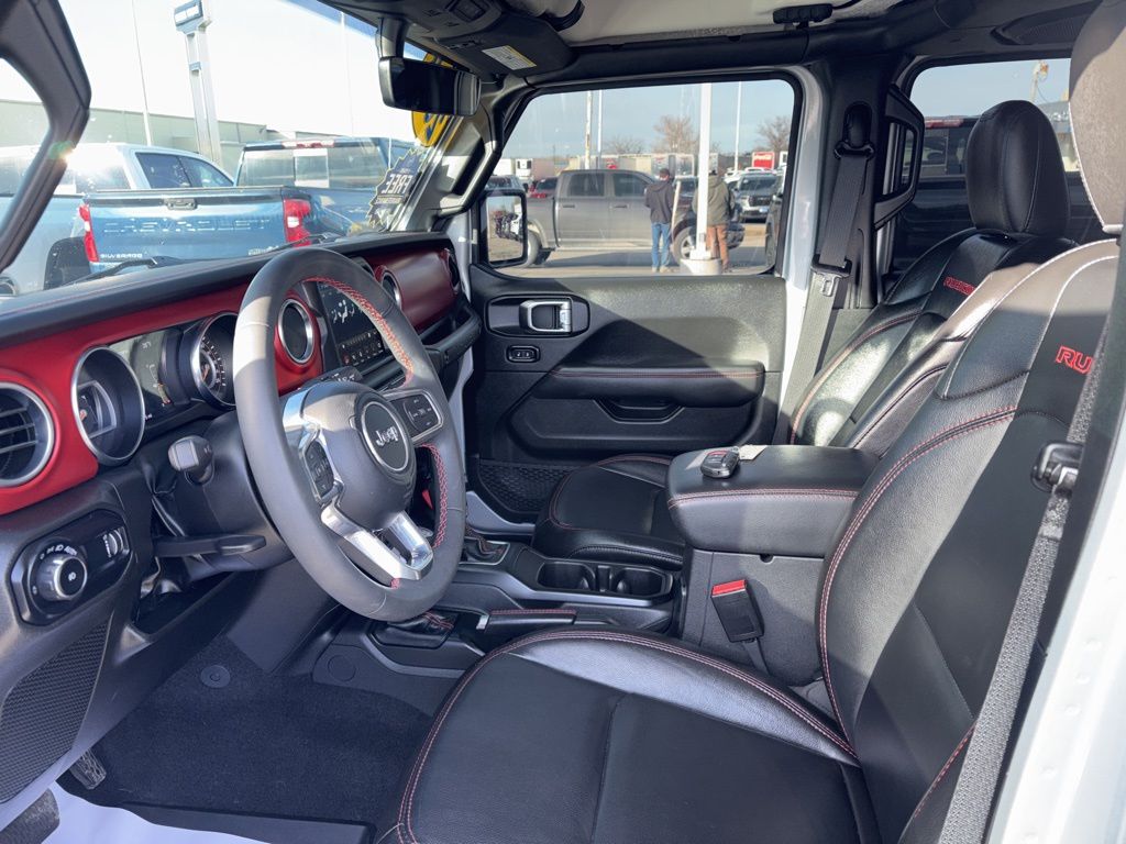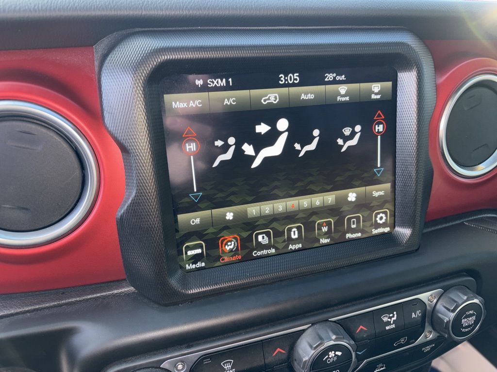 Our Rubicon cabin is a comfortable place to handle difficult conditions with supportive cloth seats, a premium-wrapped steering wheel, air conditioning, power accessories, cruise control, keyless entry, and 12V power outlets. Useful Uconnect® technology takes care of your infotainment needs with an 8.4-inch touchscreen, full-color navigation, WiFi compatibility, Alpine Audio, Android Auto®, Apple CarPlay®, Bluetooth®, and voice command.
