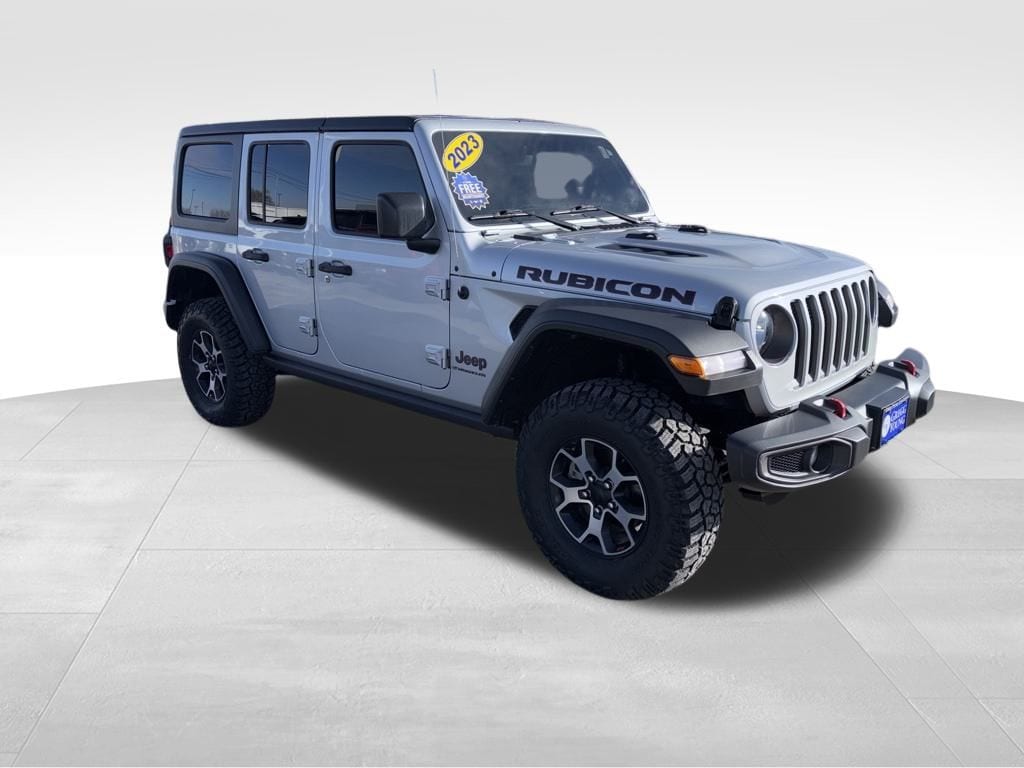 Amazingly capable, our Accident Free 2023 Jeep Wrangler Unlimited Rubicon 4 Door 4X4 in Silver Zynith can help you find freedom on the road or off! Motivated by a 3.6 Liter Pentastar V6 serving up 285hp to an 8 Speed Automatic transmission for outstanding strength. This Four Wheel Drive SUV is also well-equipped for wild terrain with features like front/rear Tru-Lok differentials and Rock-Trac 4WD, and it scores nearly 24mpg on the highway. Our Wrangler delivers rugged design cues, too, including steel rock rails, robust skid plates, fog lamps, alloy wheels, bold fender flares, a sport bar, heated power mirrors, a vented hood, and a fully removable soft top.
