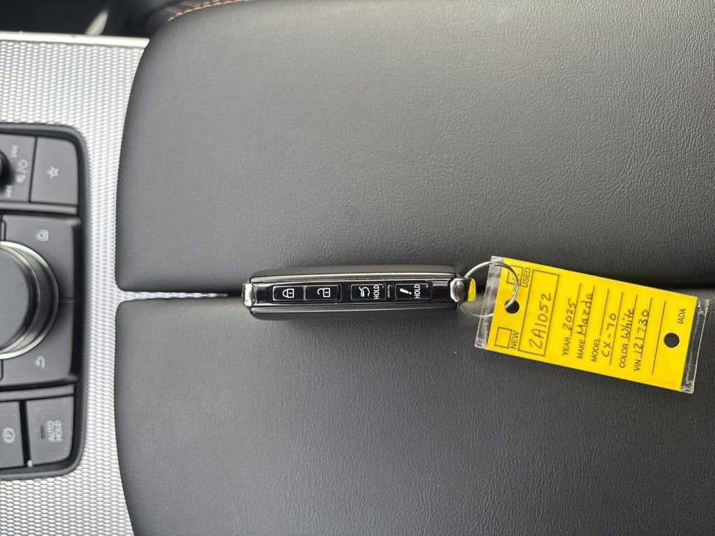 Our **2025**Mazda**CX-70**Turbo Preferred**AWD**Heated Leather Seats**Sunroof** raises the bar for refined adventures in Rhodium White Metallic! Powered by a TurboCharged 3.3 Liter 6 Cylinder and an Electric Motor delivering a combined 280hp to an 8 Speed Automatic transmission that's ready for action with Off-Road and Sport modes. This All Wheel Drive SUV also features a sporty suspension for enthusiastic handling, and it returns nearly 28mpg on the highway. Aerodynamically engineered, our Mazda CX-70 captures attention with LED lighting, a power sunroof, a power liftgate, heated power mirrors, black accents, roof rails, and bold wheels.