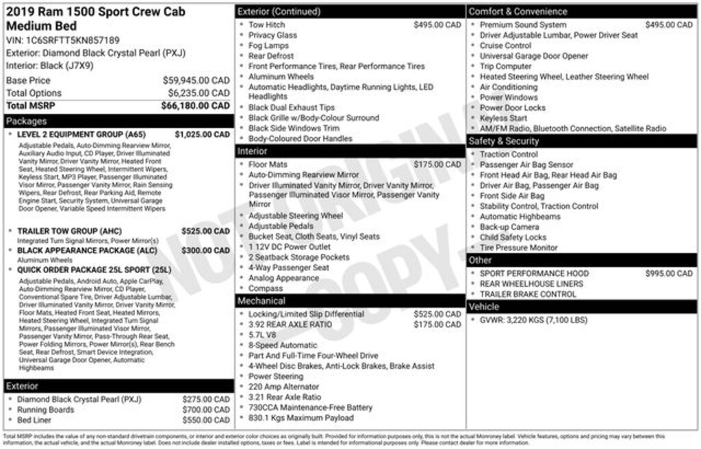 Find your wild side with our HEMI Powered **Accident Free**2019**RAM 1500**Rebel**Crew Cab**4X4**Heated Seats**Heated Steering Wheel** in Diamond Black Crystal Pearl! Motivated by a 5.7 Liter HEMI V8 that offers 395hp matched to an 8 Speed Automatic transmission for astonishing passing authority. You will be in total control with this unstoppable Four Wheel Drive truck with eLocker differential and Bilstein Monotube Shocks for incredible off-road capability, scoring nearly 20mpg on the highway. Add some extra swagger to your day with our 1500, which commands the road with 33-inch tires, unique wheels, a large black grille, running boards, and dual exhaust.