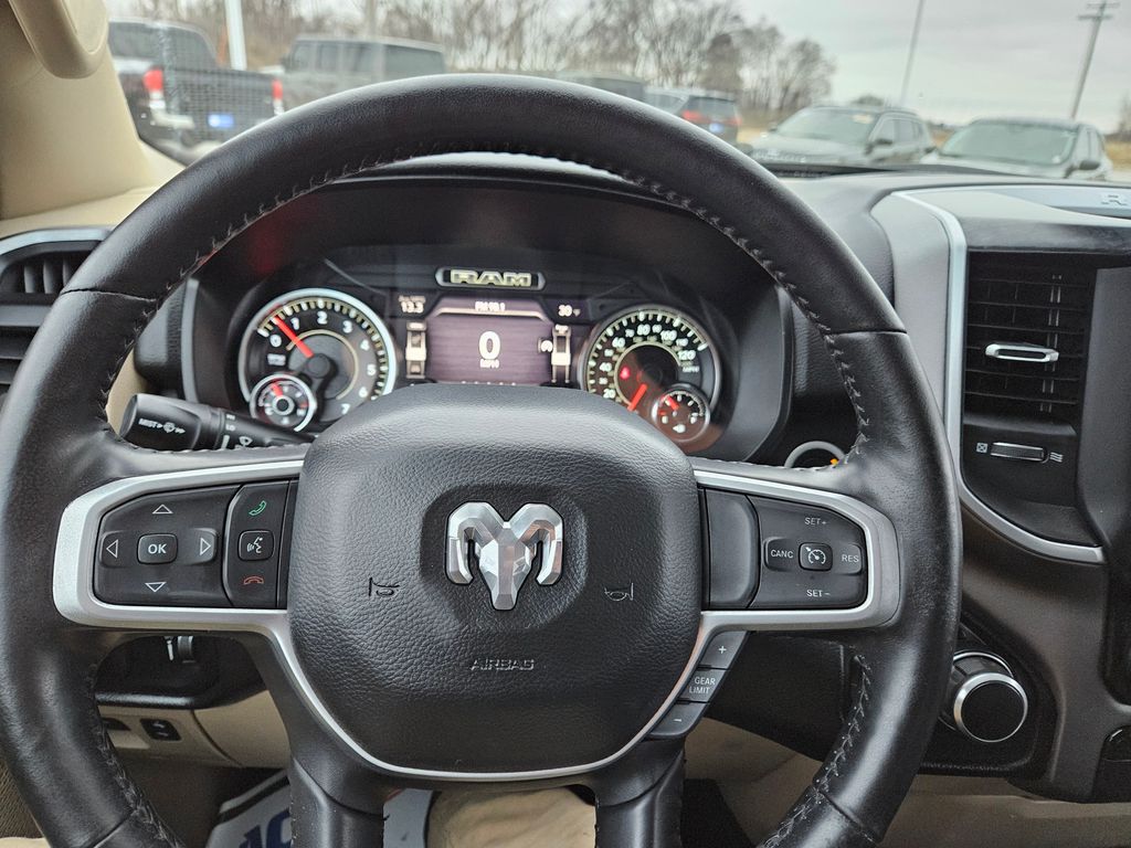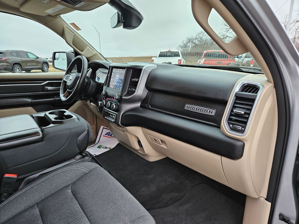 You'll also appreciate the thoughtful amenities in our Big Horn cabin. Highlights include heated seats, a heated leather-wrapped steering wheel, air conditioning, pushbutton ignition, and keyless entry, all complemented by a Uconnect® infotainment system with a 5-inch display, integrated voice command, Bluetooth®, and a six-speaker sound system. Smart interior storage brings even more practicality.