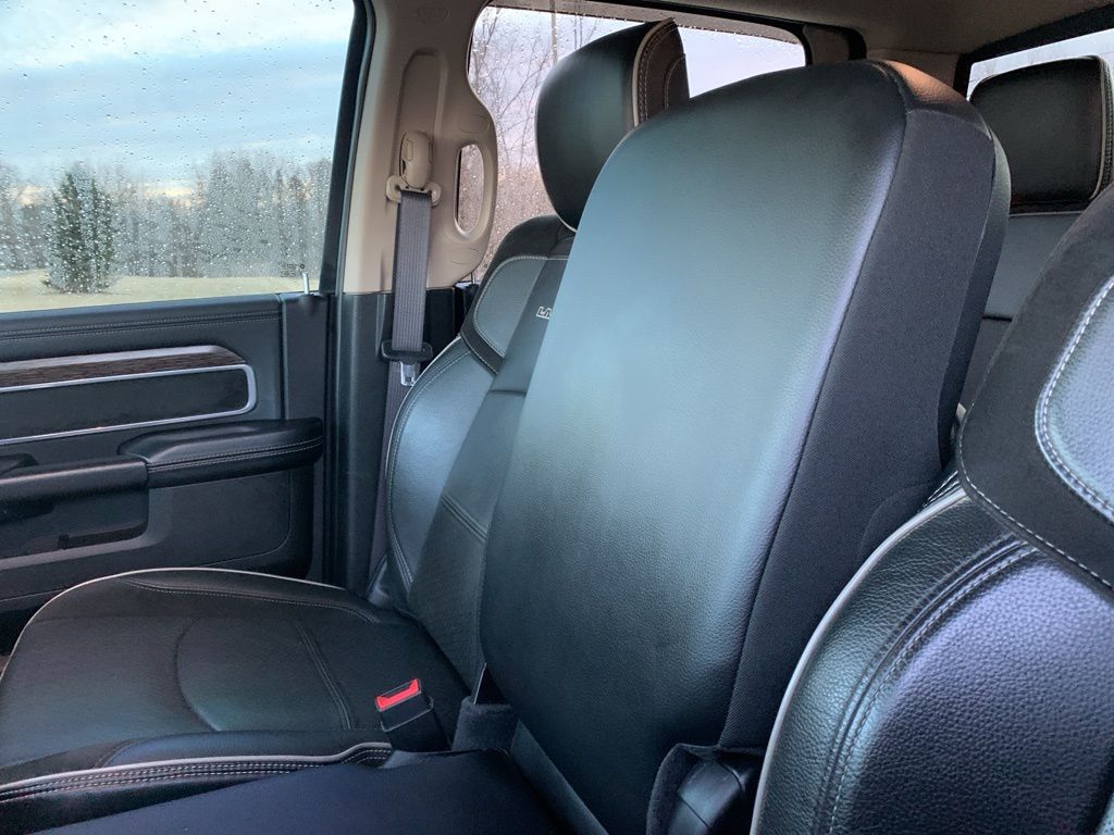 Settle into Laramie's upscale heated/ventilated power seats with premium leather and grip the heated steering wheel with audio controls. Admire the beauty of the open-pore Barnwood and brushed aluminum accents. Get acquainted with the Uconnect® multimedia with an 8.4-inch touchscreen display featuring integrated voice command with Bluetooth®, full-color Navigation, and available satellite radio. Other conveniences include available WiFi, remote ignition, dual-zone automatic climate control, and auto-dimming mirrors.