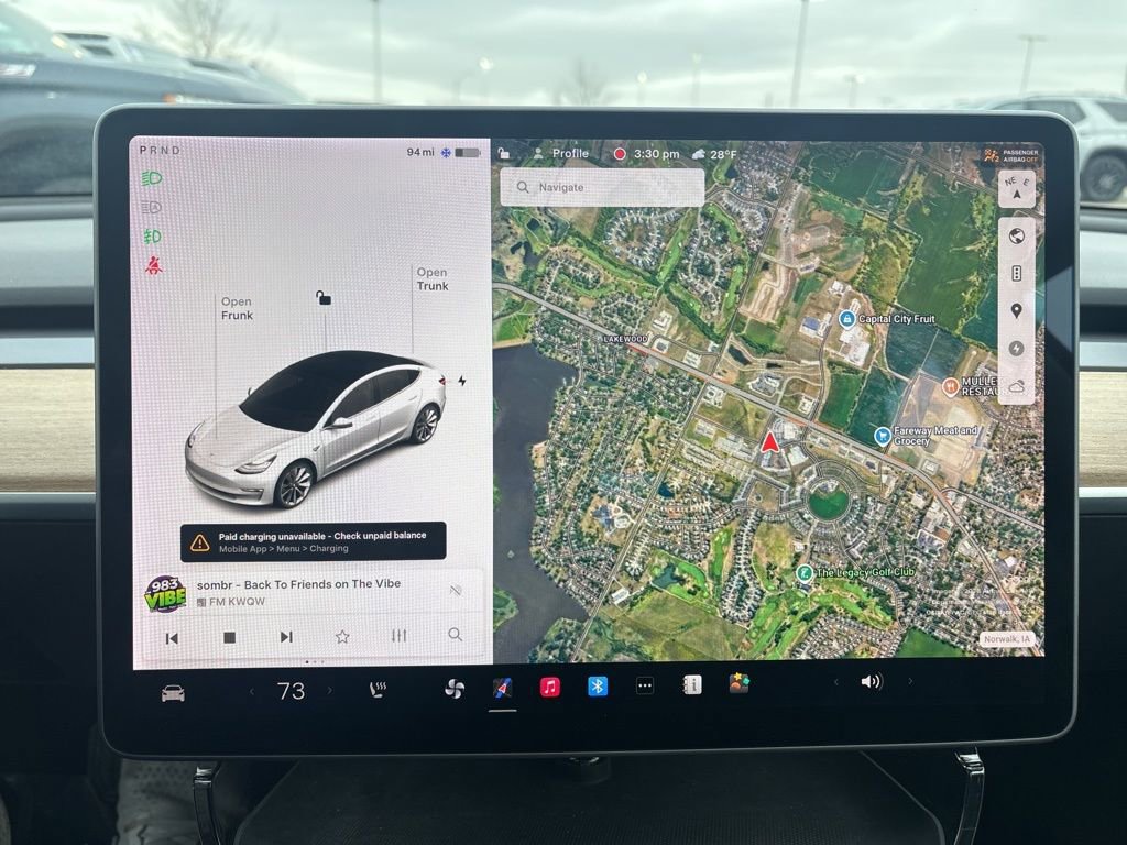 Black 2020 Tesla Model 3 Long Range AWD 1-Speed Automatic Electric Motor15 Speakers, 4-Wheel Disc Brakes, ABS brakes, Air Conditioning, Alloy wheels, Auto High-beam Headlights, Auto-dimming Rear-View mirror, Automatic temperature control, Brake assist, Bumpers: body-color, Compass, Delay-off headlights, Driver door bin, Driver vanity mirror, Dual front impact airbags, Dual front side impact airbags, Electronic Stability Control, Exterior Parking Camera Rear, Four wheel independent suspension, Front anti-roll bar, Front Bucket Seats, Front Center Armrest, Front dual zone A/C, Front fog lights, Front reading lights, Fully automatic headlights, Genuine wood dashboard insert, Heated door mirrors, Heated front seats, Heated rear seats, Illuminated entry, Knee airbag, Low tire pressure warning, Memory seat, Navigation System, Occupant sensing airbag, Outside temperature display, Overhead airbag, Passenger door bin, Passenger vanity mirror, Power door mirrors, Power driver seat, Power passenger seat, Power steering, Power windows, Premium Audio System, Premium Heated Front Bucket Seats, Premium Seat Trim, Radio data system, Rear reading lights, Rear seat center armrest, Rear window defroster, Security system, Speed control, Speed-sensing steering, Split folding rear seat, Steering wheel memory, Steering wheel mounted A/C controls, Steering wheel mounted audio controls, Telescoping steering wheel, Tilt steering wheel, Traction control, Trip computer, Variably intermittent wipers, and Wheels: 18 x 8.5 Aero. Recent Arrival! 124/116 City/Highway MPG