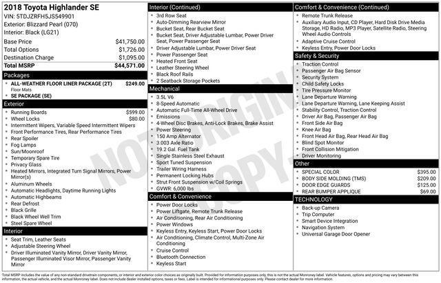 Enhance your journey with our 2018 Toyota Highlander SE AWD in Blizzard Pearl and feel free to carve out your path! Motivated by a 3.5 V6 that generates 295hp connected to a responsive 8 Speed Automatic transmission for the everyday capability you can count on. This All Wheel Drive SUV also showcases a sport-tuned suspension for responsive handling and sees nearly 27mpg on the highway. Bold and expressive, the design of our Highlander is complemented by LED lighting, fog lamps, alloy wheels, a power liftgate, and a sunroof with dark-painted roof rails.