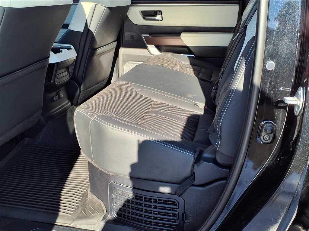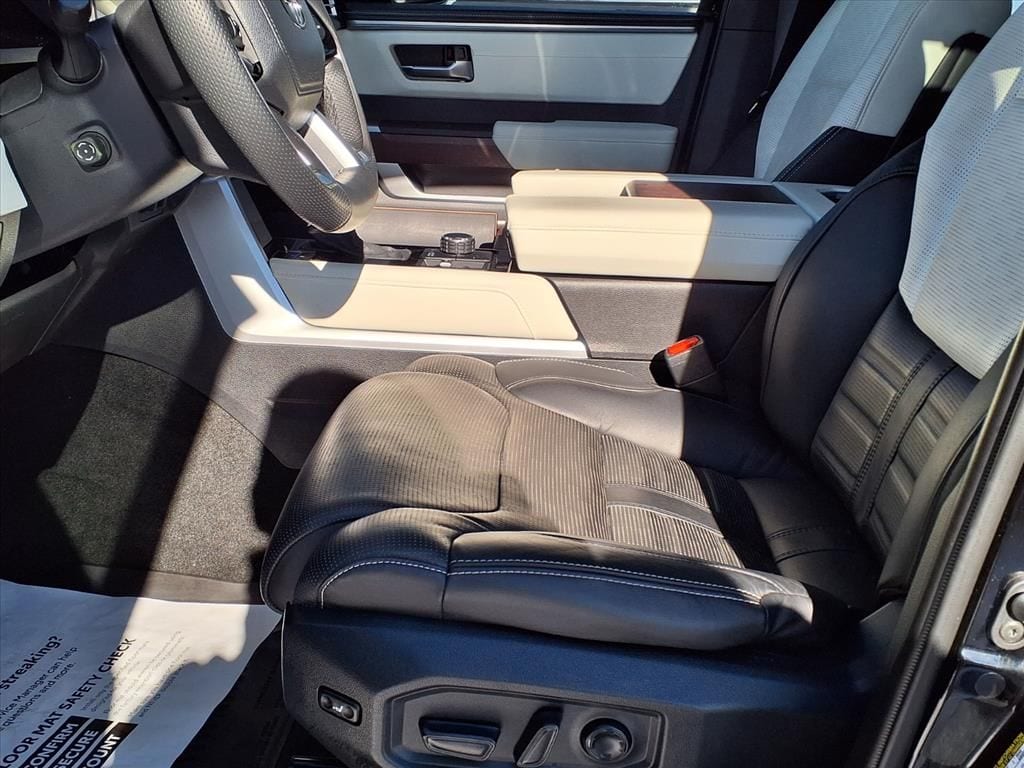 Our captivating 2023 Toyota Tundra Capstone CrewMax 4X4 raises the bar for deluxe trucks in Midnight Black Metallic! Powered by a Twin-TurboCharged 3.4 Liter i-FORCE MAX V6 and an Electric Motor delivering a combined 437hp to a 10 Speed Automatic transmission for refined yet rugged performance. This Four Wheel Drive truck also has responsive handling to inspire confidence, and it returns nearly 22mpg on the highway. Our Capstone's dominating design includes a panoramic sunroof, premium LED lighting, huge 22-inch alloy wheels, a stamped tailgate, and power running boards.