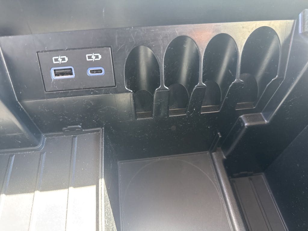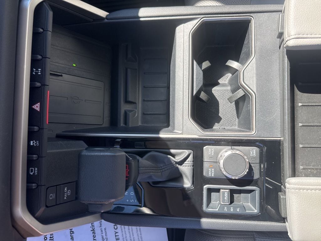 Our Limited cabin is well-equipped with our TRD Off-Road Pack, which adds a heated-leather TRD steering wheel, a red engine-start button, and a 12-speaker JBL sound system to heated/ventilated power front SofTex seats, dual-zone automatic climate control, and a soft-touch instrument panel housing a 12.3-inch driver display. A 14-inch touchscreen anchors the infotainment system, supporting WiFi compatibility, wireless Apple CarPlay/Android Auto, and Bluetooth.