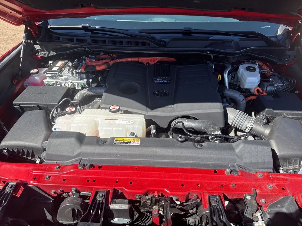 A premium powerhouse, our 2024 Toyota Tundra Limited CrewMax 4X4 with the TRD Off-Road Pack looks fantastic in Supersonic Red! Motivated by a Twin-TurboCharged 3.4 Liter Hybrid V6 and an Electric Motor supplying a combined 437hp to a 10 Speed Automatic transmission with a multimode performance system for tailored capability. This Four Wheel Drive truck also scores nearly 21mpg on the highway and welcomes our TRD & Sunroof Pack for fierce and functional upgrades. Check out our Tundra for a TRD off-road suspension, 20-inch TRD wheels, a TRD front skid plate, multifunction mirrors, and an exclusive grille.